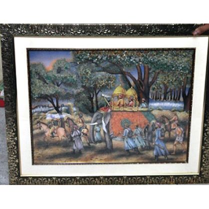 3D Indian Procession Gemstone Painting size 24in.x30in. **|**|** Subject: Procession ; Dimension: 3D ; Material: Real Gems On 4in. Acrylic ; Framing: 2in.+.5in.BeadedMount 3in.Outer Acrylic ; Size: 1.5ft.x2ft. (18in.x24in.) ; Outer Size: 24in.x30in. ; MSRP: $800