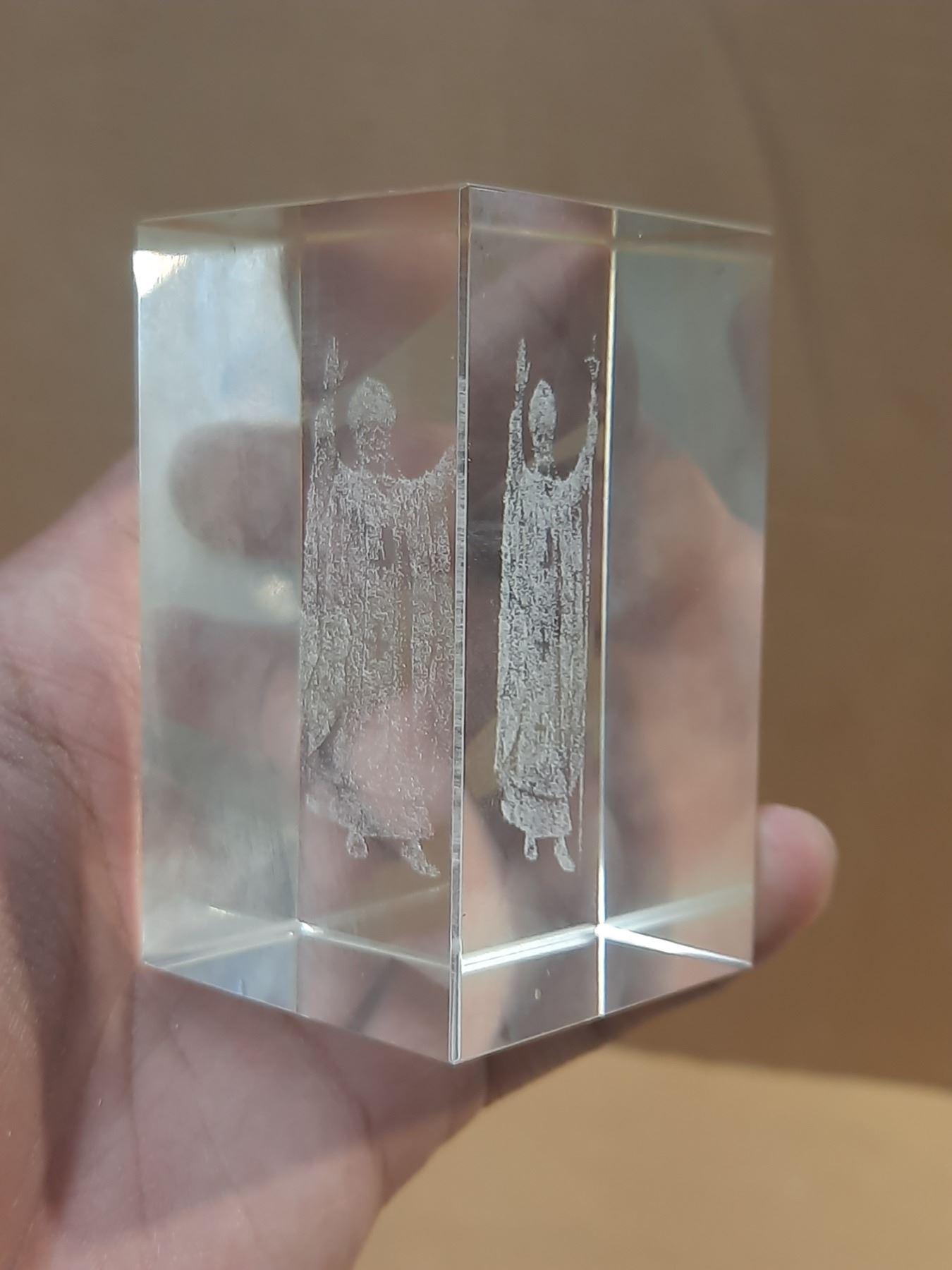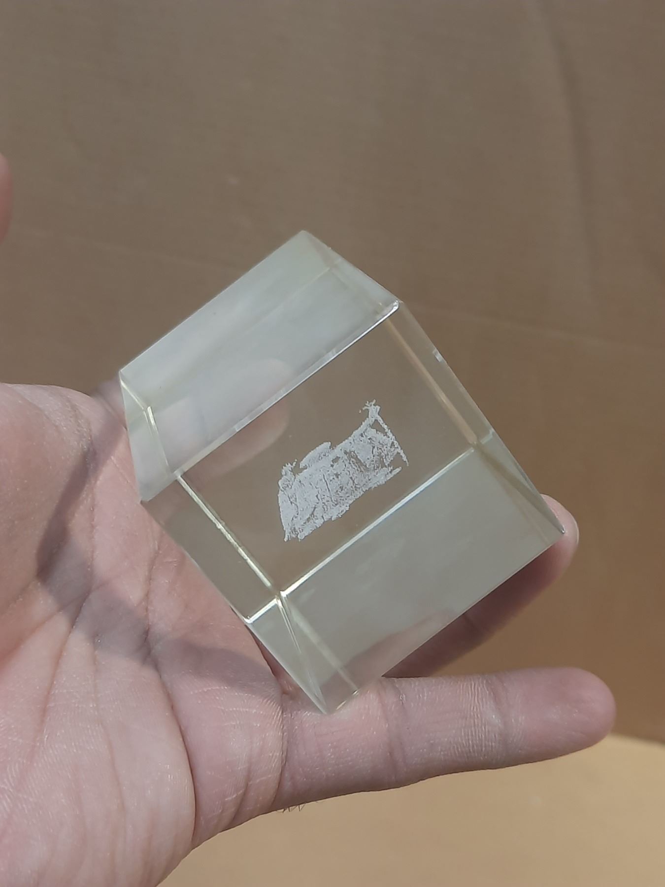 3D Santa Crystal Santa of Old Caser Etched Paperweight.
