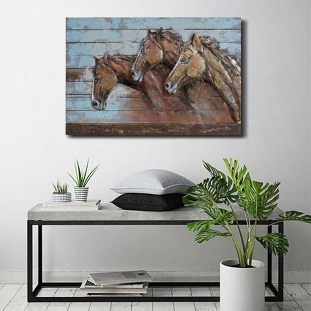 3D metal art, each piece involves complex craftsmanship, cutting, modeling, welding, aging treatment, anti rust treatment, coloring and matte surface treatment, etc. Ready to hang and these metal artworks are each created by professional artists. Finely detailed conversation piece of metal wall art; stereo graph style paintings are each and as such may vary from the product image slightly. The perfect decoration and gift, perfect for living spaces, office, kitchen, hallway, garage or even the bedroom and easy to hang; great gift for any art lover who adores quality artwork. Size: 47X32 inch.