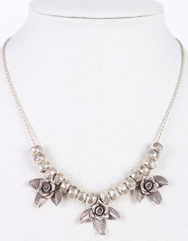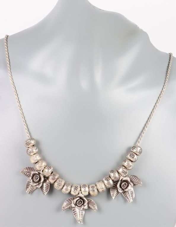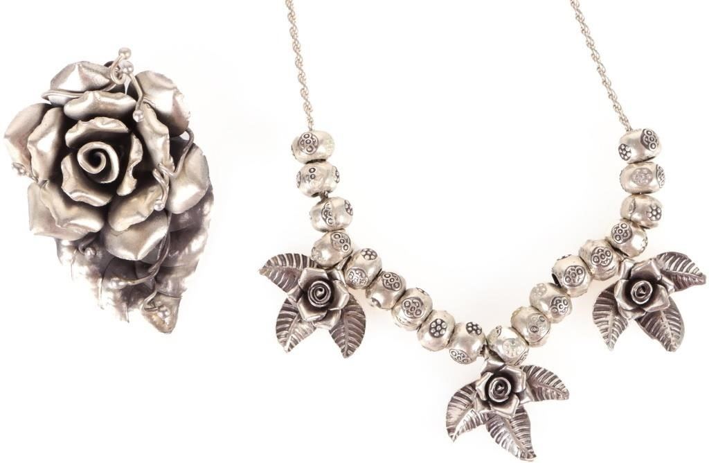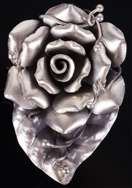 Beautiful 3D vintage sterling silver rose necklace & large pendant.