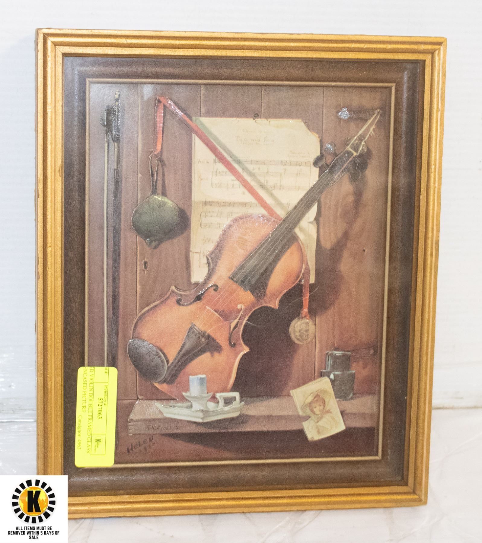 3D VIOLIN DOUBLE FRAMED GLASS ENCASED PICTURE