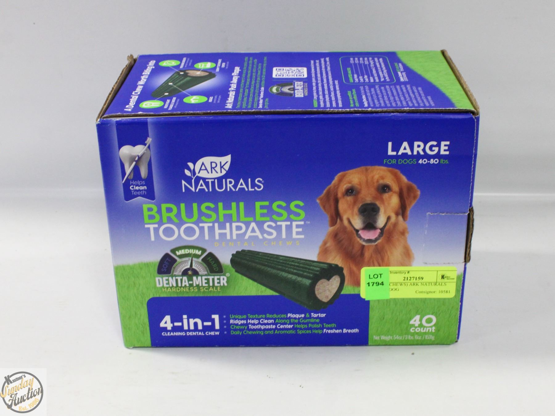 40+LBS BRUSHLESS TOOTHPASTE 4-IN-1 DENTAL TREAT FOOD- BB DEC 2026- RETAIL $73 **ALL ITEMS MUST BE REMOVED BY 5PM SATURDAY, NOVEMBER 8th 2025. ALL REMAINING ITEMS WILL BE SUBJECT TO A $6.00 PER DAY STORAGE CHARGE. ANY ITEMS REMAINING AFTER MONDAY, NOVEMBER 24TH 2025 WILL BE CONSIDERED FORFEITED. NO REFUNDS WILL BE ISSUED FOR FORFEITED ITEMS. TO SCHEDULE A PICK UP APPOINTMENT CLICK HERE