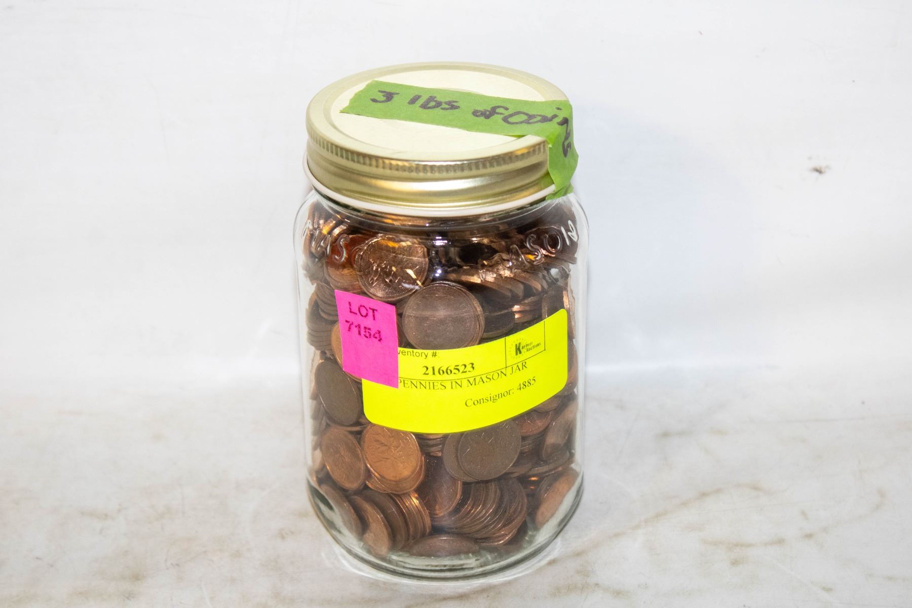 3LBS OF PENNIES IN MASON JAR