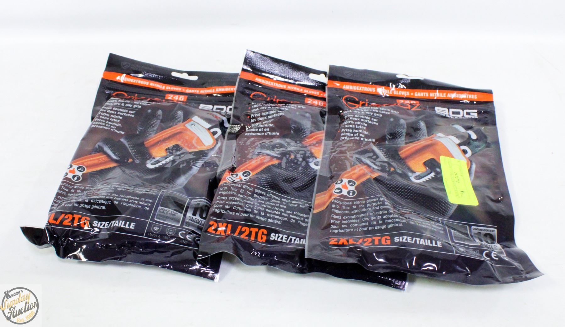 3PACKS OF 10 GLOVES BDG GRIPPAZ NITRILE