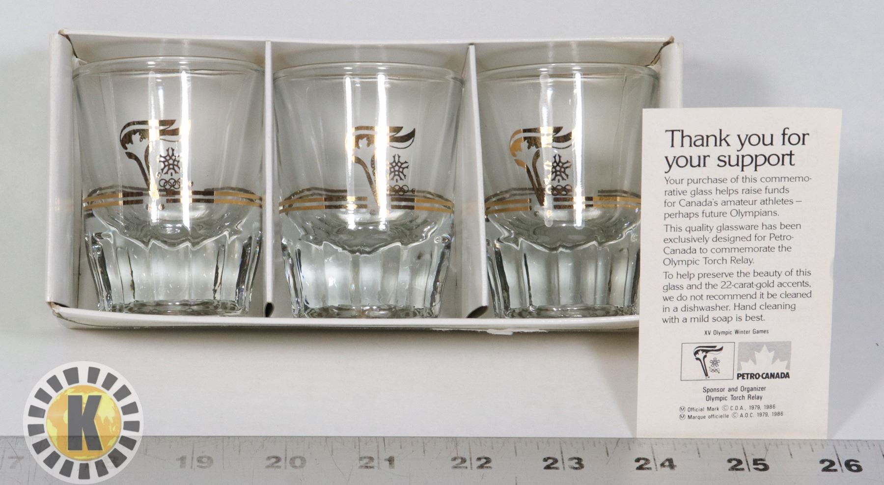 3PC CALGARY OLYMPICS PETRO-CANADA SHOT GLASSES