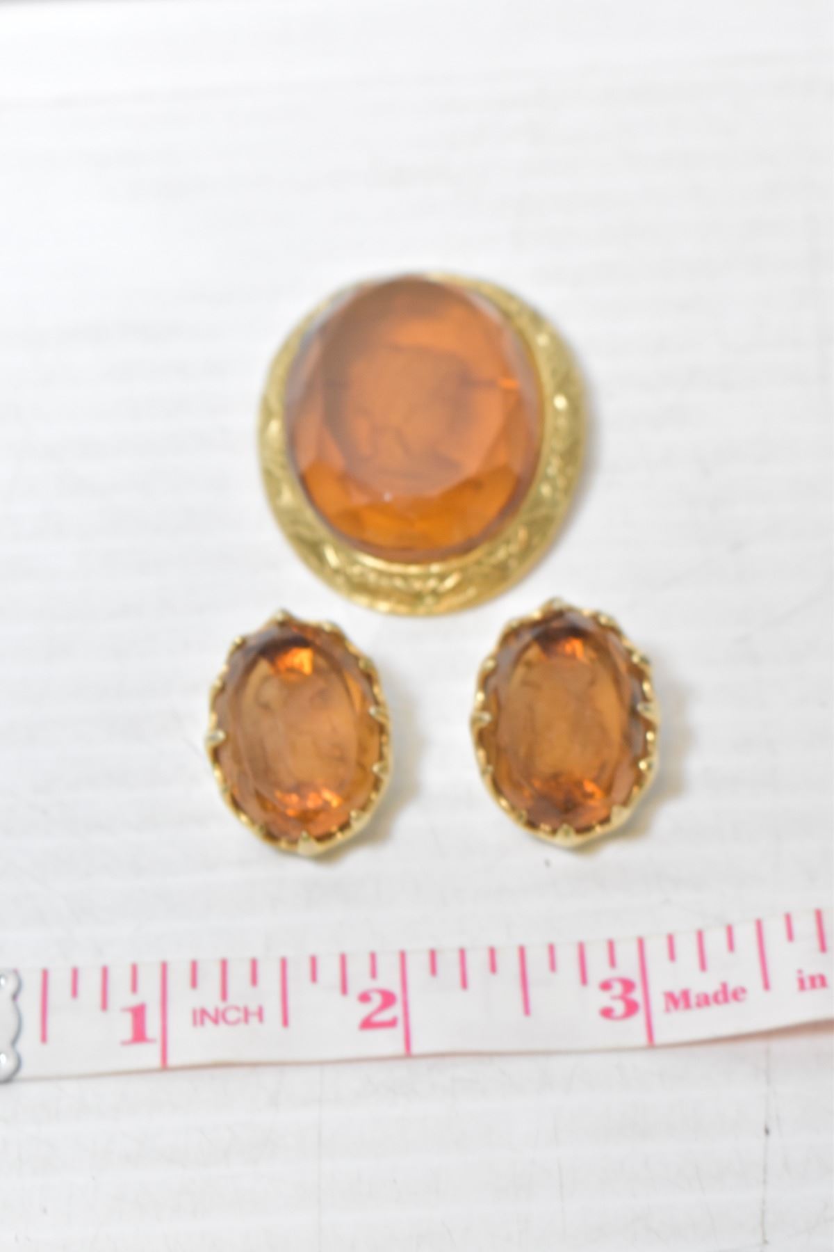 3PC CAMEO BROOCH & CLIP ON EARRINGS