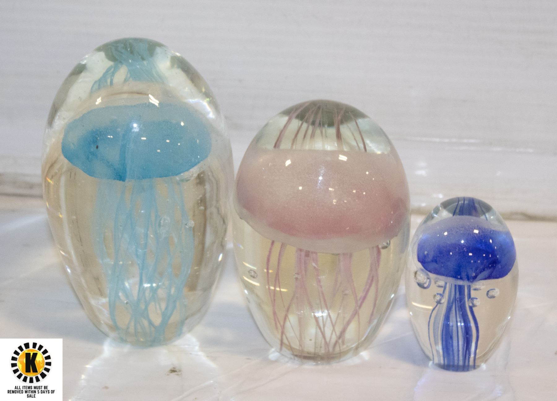 3PC HANDBLOWN ENCASED JELLYFISH MURANO GLASS