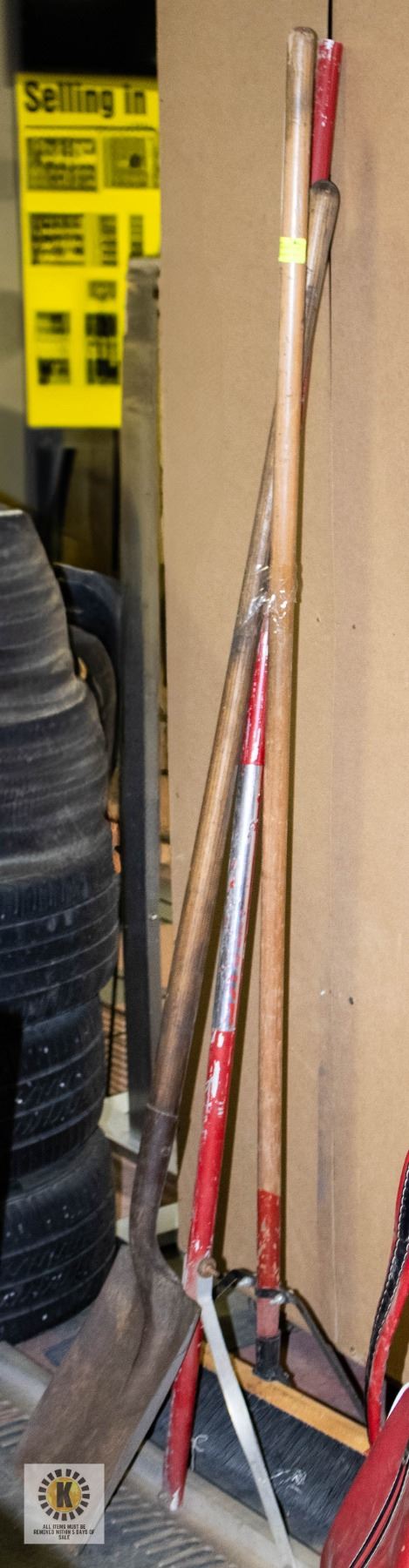 3PC LOT INCLUDES SHOVEL, RAKE AND BROOM