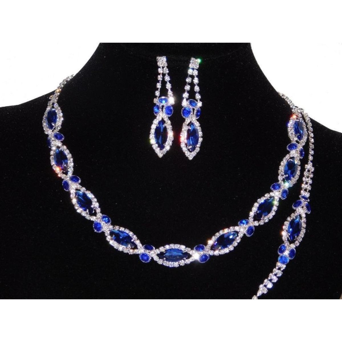 Upscale Designer Jewelry (Costume) Item description Earring type:pierced. 14"with 6" extender. length of Bracelet: 7.1/2" closure type: lobster clasp. necklace closure type: lobster clasp. length of earrings: 2". silver tone. - 10081-040618-EB-21880