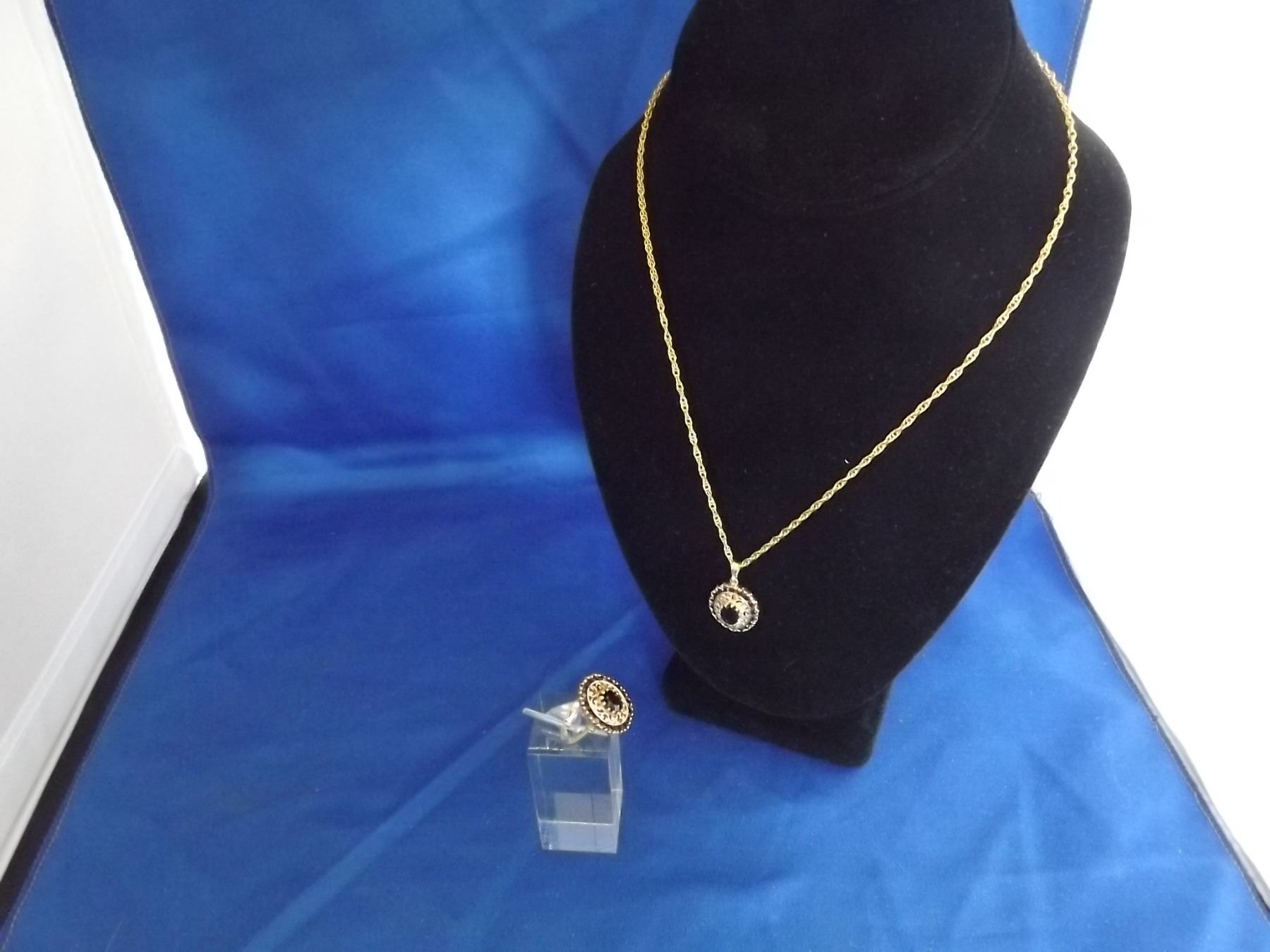 3PC SET 10K YELLOW GOLD GARNET, RING PENDANT AND...