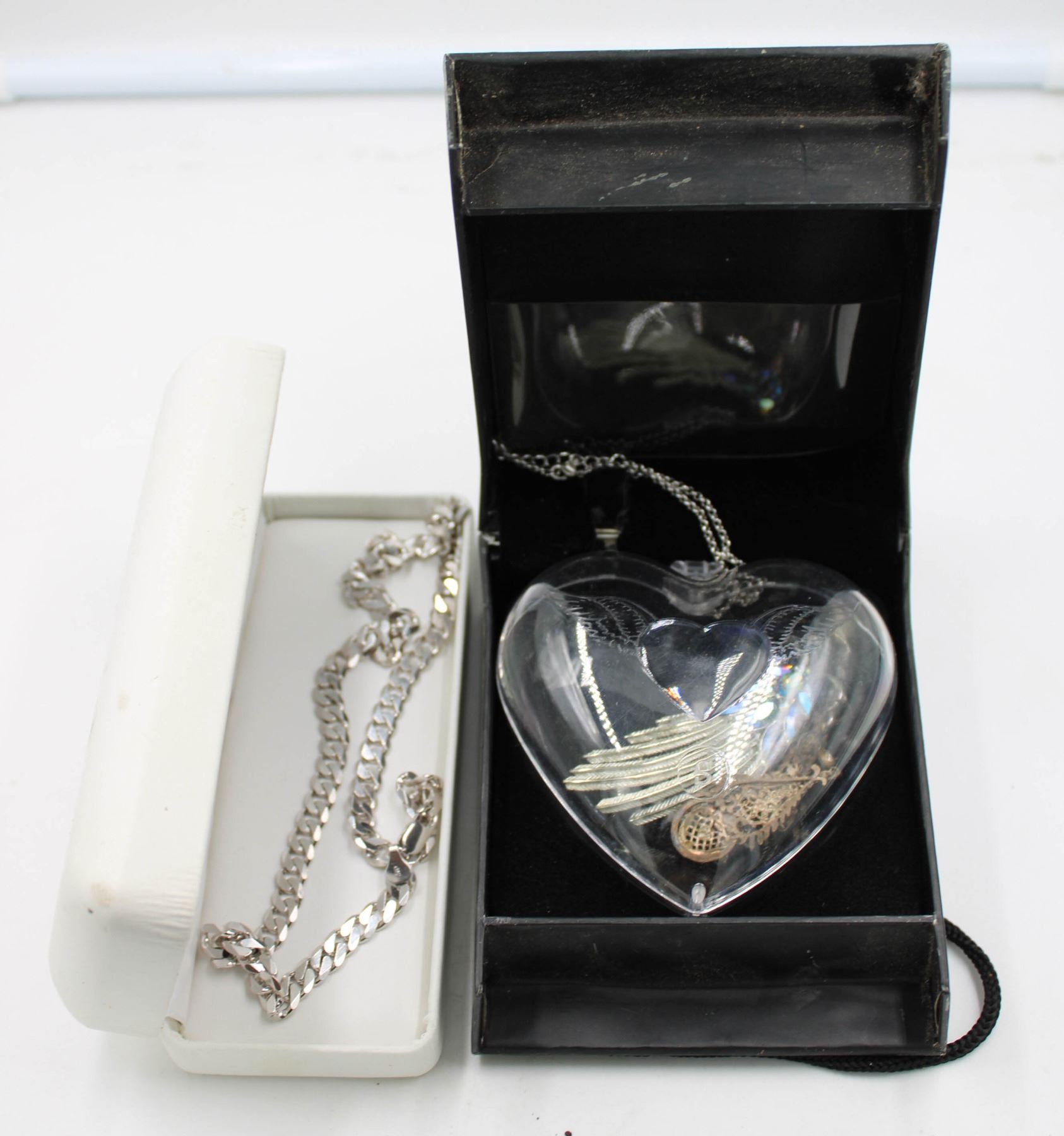 AMETHYST HEART FOR NECKLACE, SILVER BROOCH IN BLUE ENCRUSTED STONES
