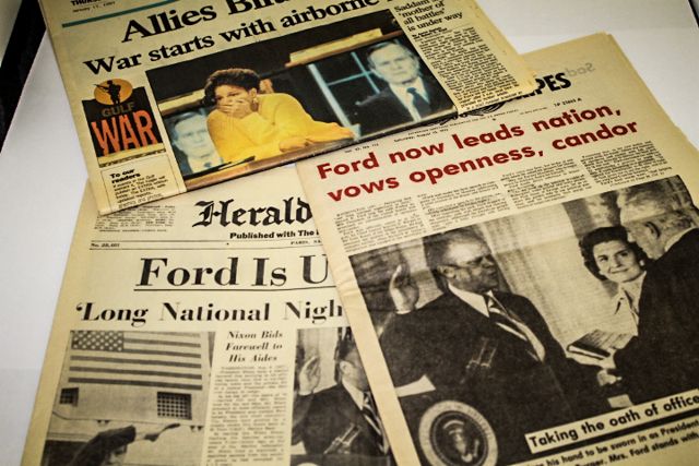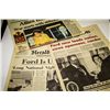 3PCS - NEWSPAPERS - ALLIES BLITZ IRAQ, FORD TAKING OATH, FORD IS US PRESIDENT