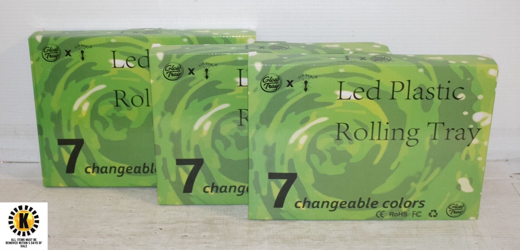 3PK OF 7 COLOR CHANGING LED PLASTIC ROLLING TRAYS;