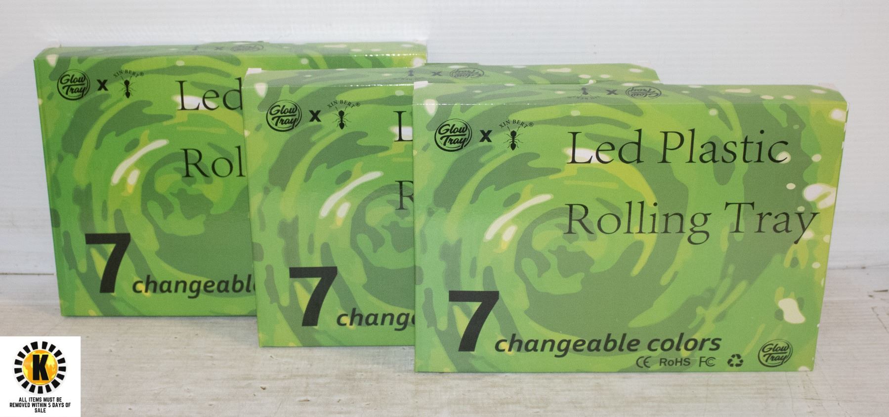 3PK OF 7 COLOR CHANGING LED PLASTIC ROLLING TRAYS;