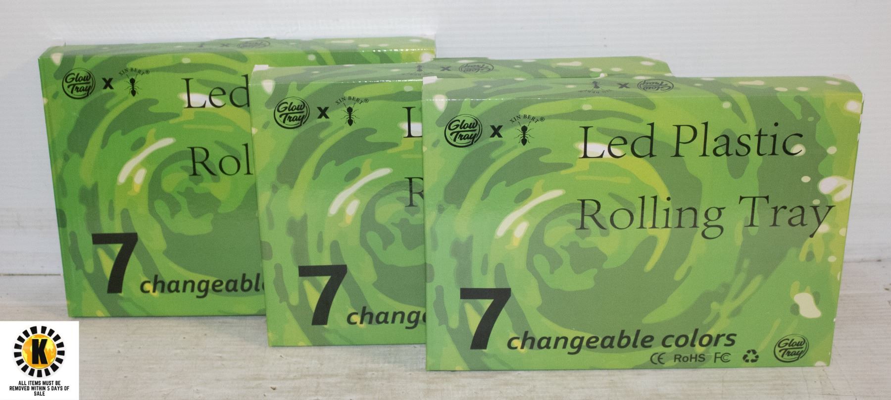 3PK OF 7 COLOR CHANGING LED PLASTIC ROLLING TRAYS;