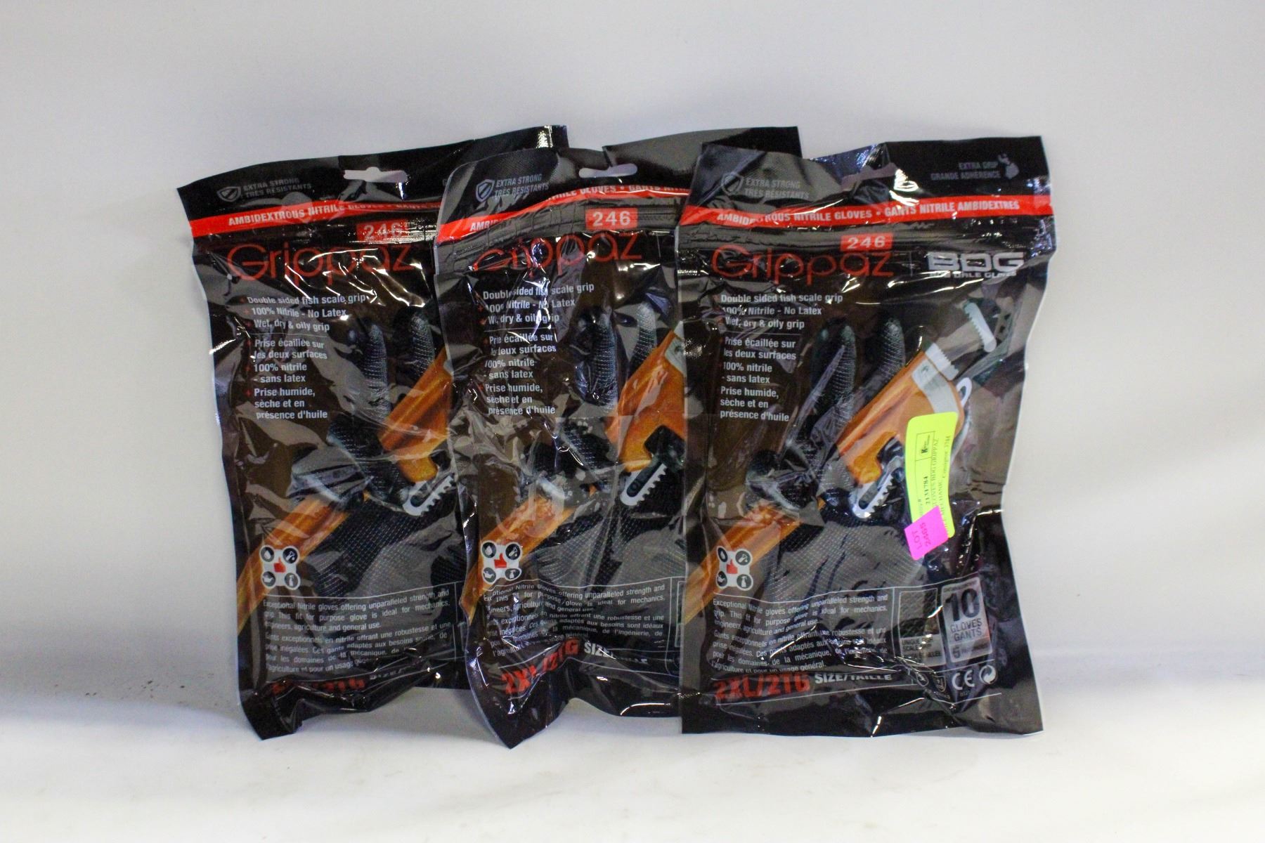 3PKS OF 10 GLOVES BDG GRIPPAZ NITRILE MECHANIC