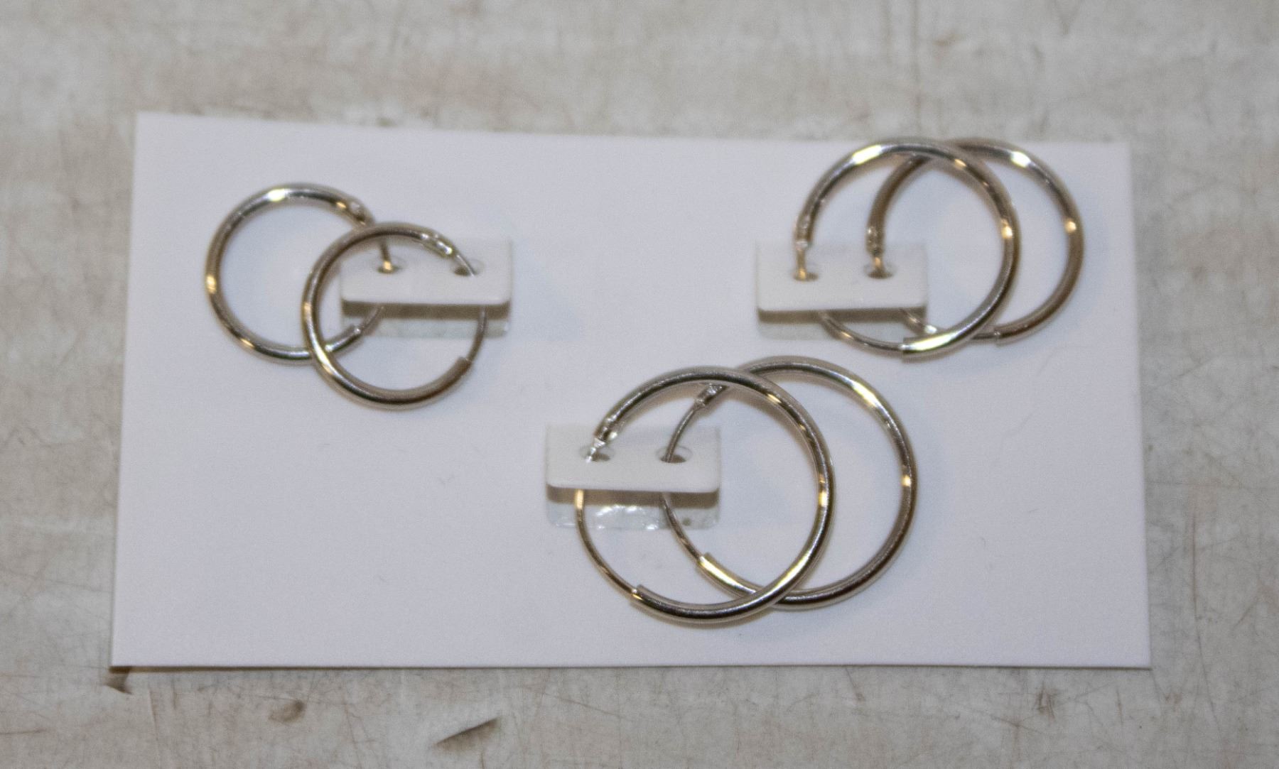 3PRS SILVER STAMPED HOOP EARRINGS, NEW