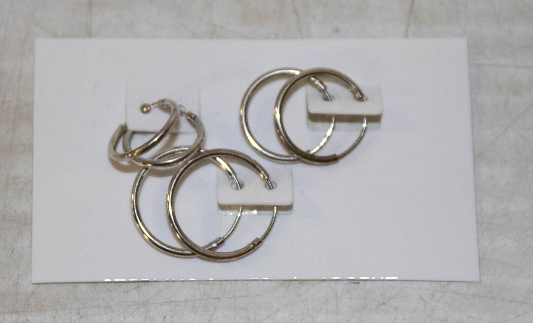 3PRS SILVER STAMPED HOOP EARRINGS, NEW