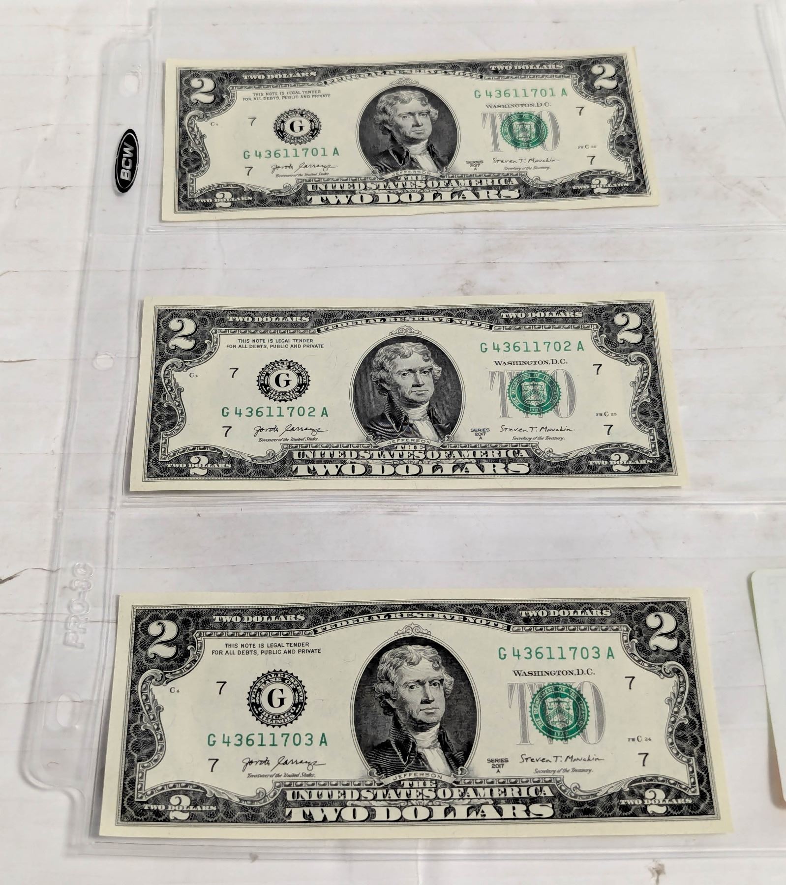 3X$2 US BANK NOTES CONSECUTIVE SE #'S