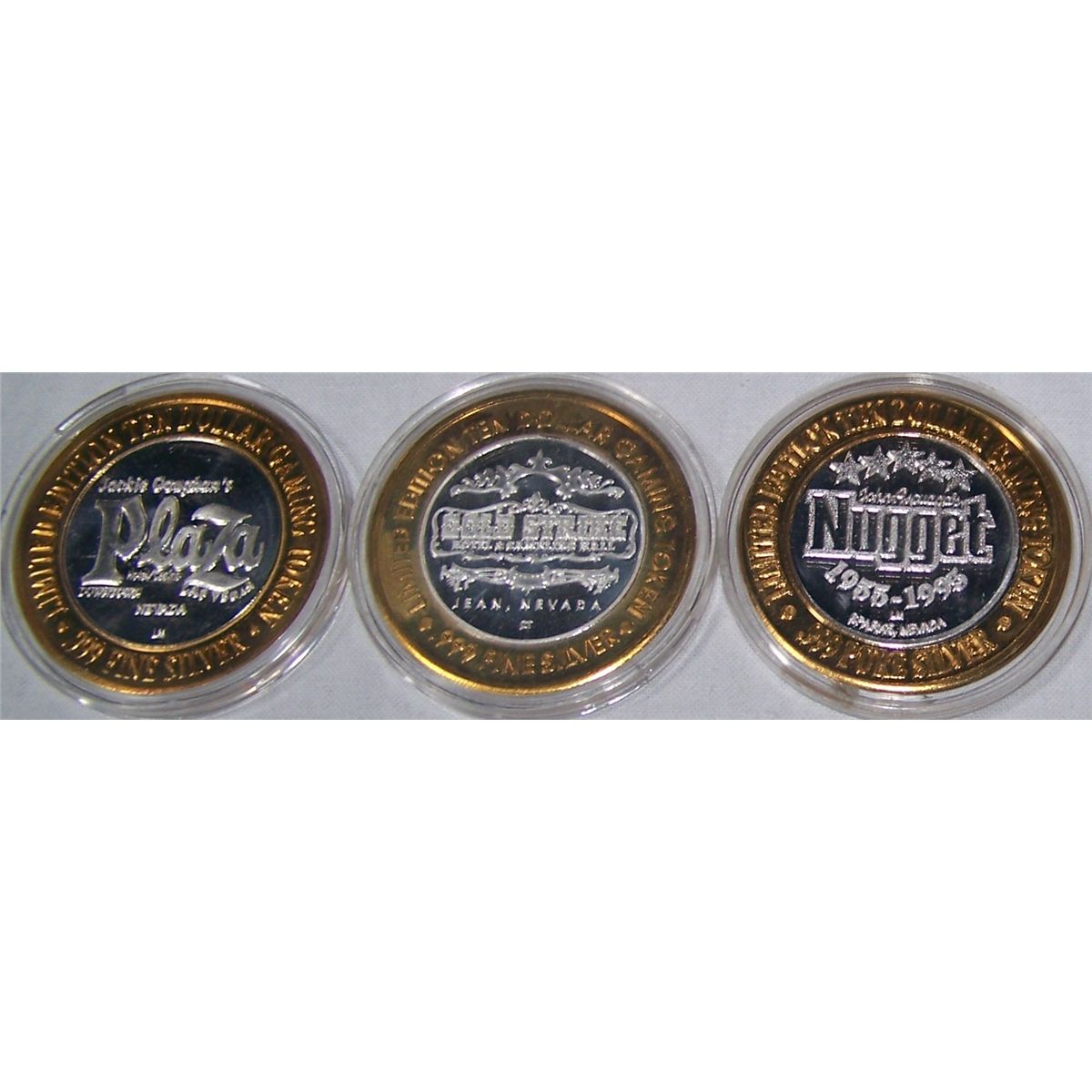 (3X$) .999 FINE SILVER CASINO STRIKES-NUGGET,PLAZA, GOLD STRIKE