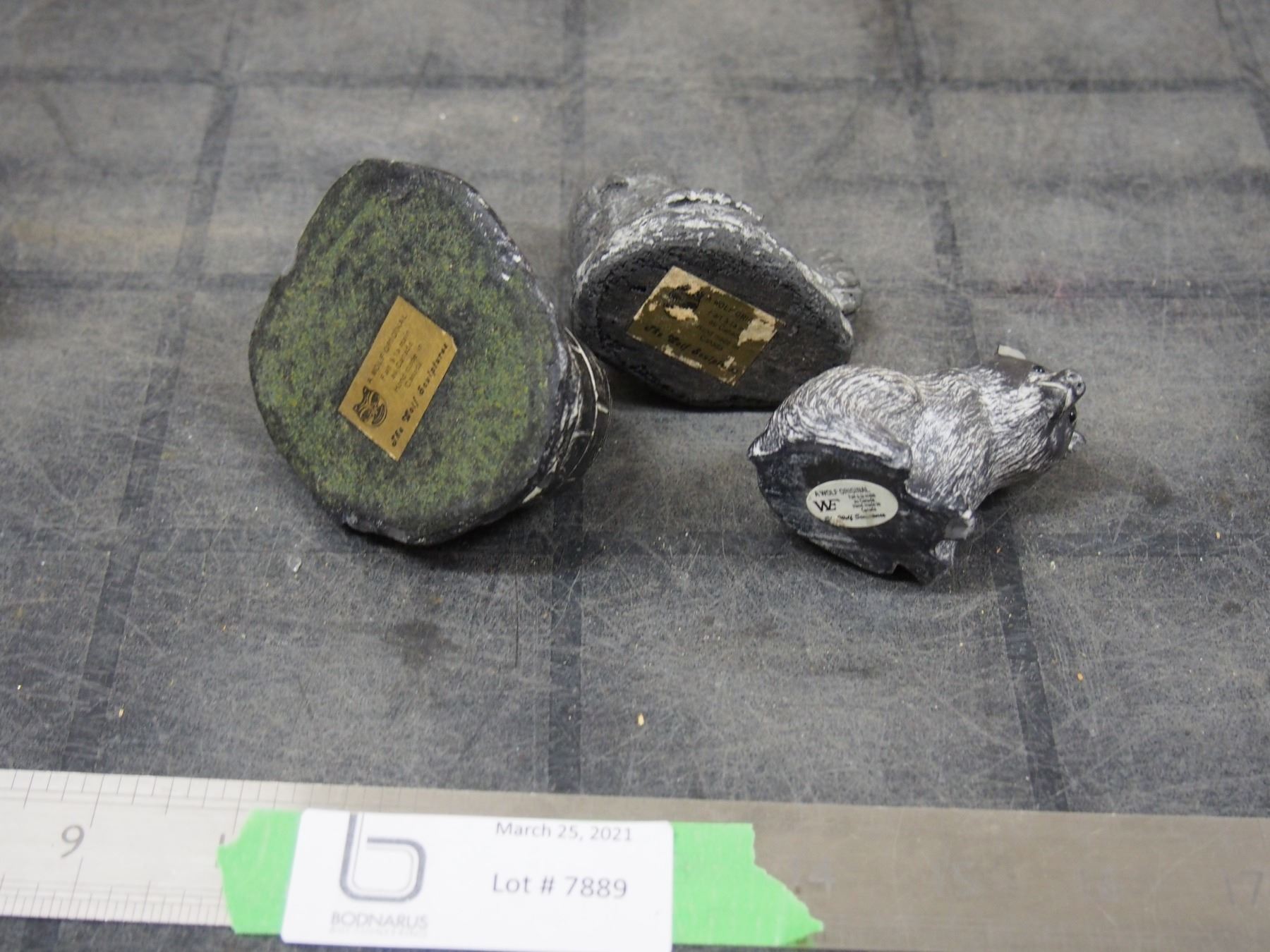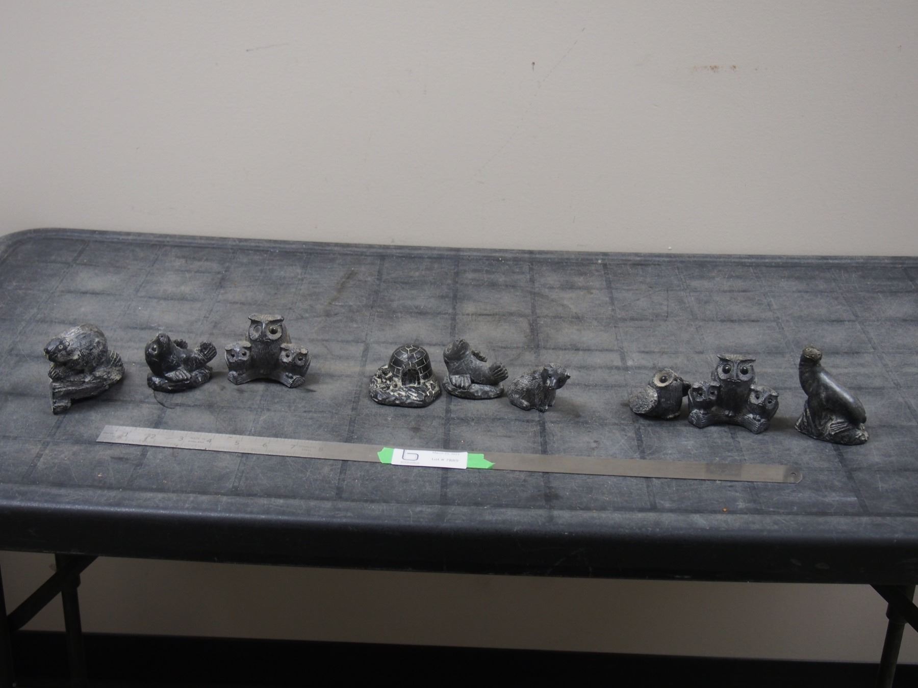 3X THE MONEY/ WOLF CARVING (SOAPSTONE?) TOTAL 9 (1 HAS CHIP)