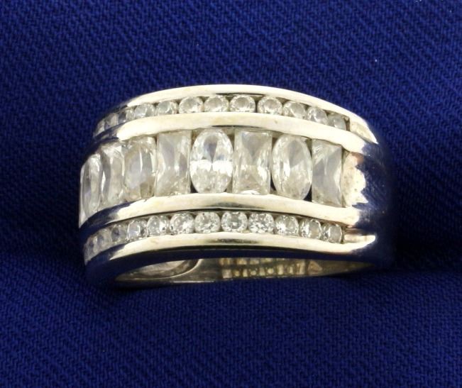 In 14k white gold, containing 3cts of oval, rectangle, and round cz gemstones with excellent sparkle. Size 8. 7.5g.