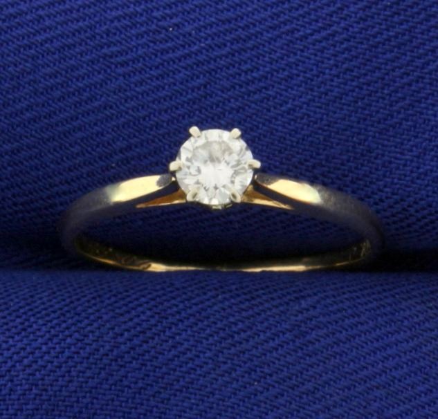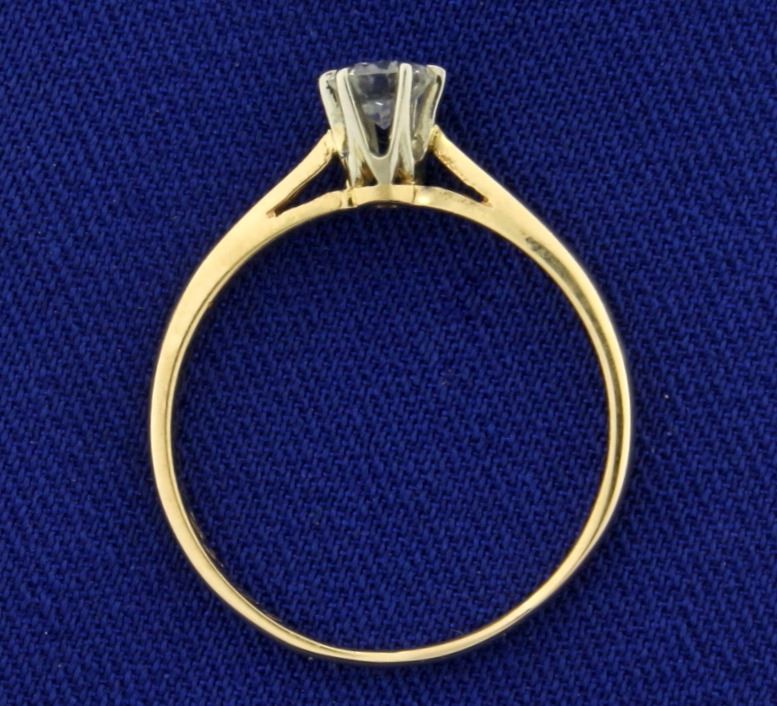In 14K Yellow Gold. Contains a high quality .3ct diamond, VS clarity/G color. Excellent cut for lots of sparkle. Size 7. 1.4g