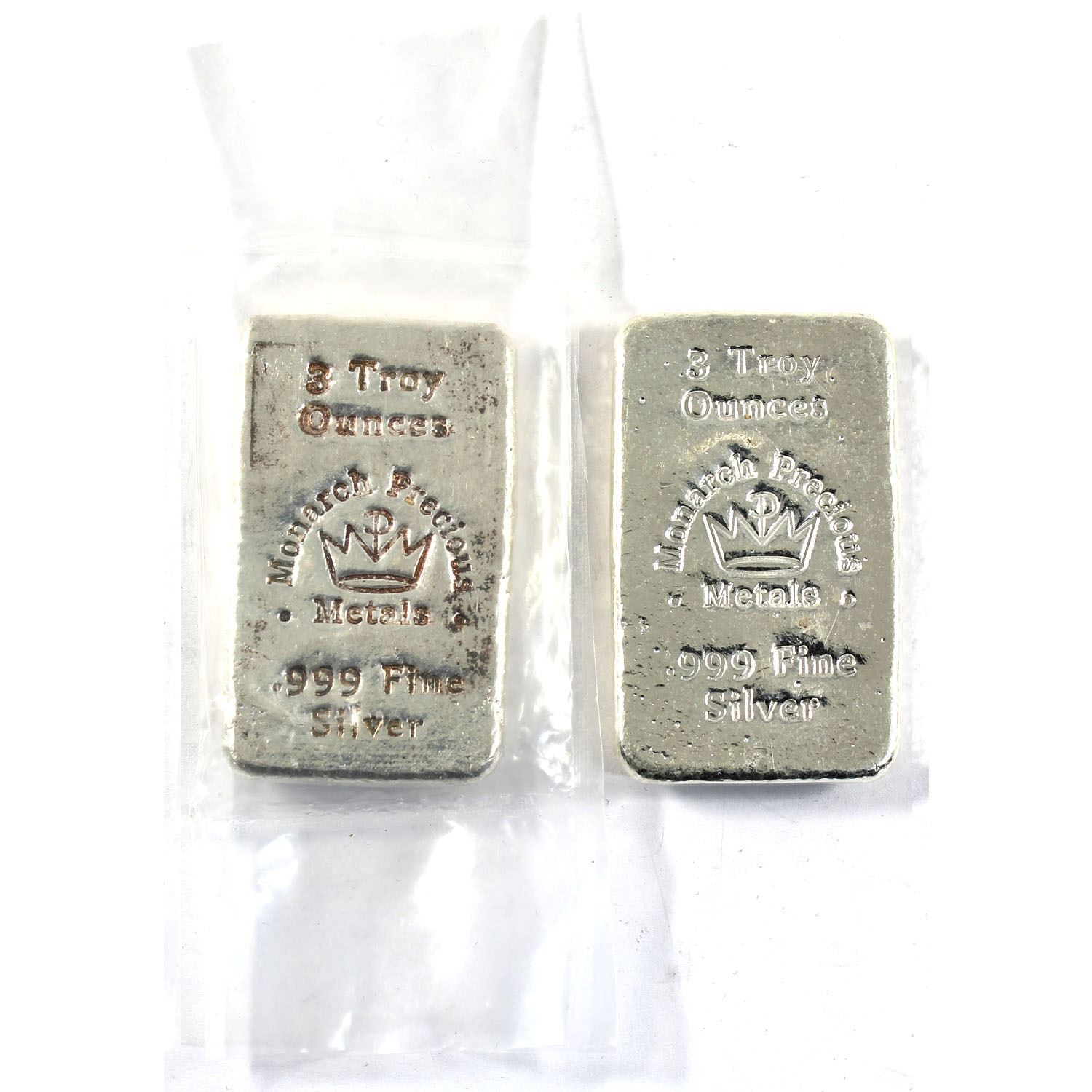 3oz Monarch Precious Metals .999 Fine Silver Poured Bar (TAX Exempt).2pcs