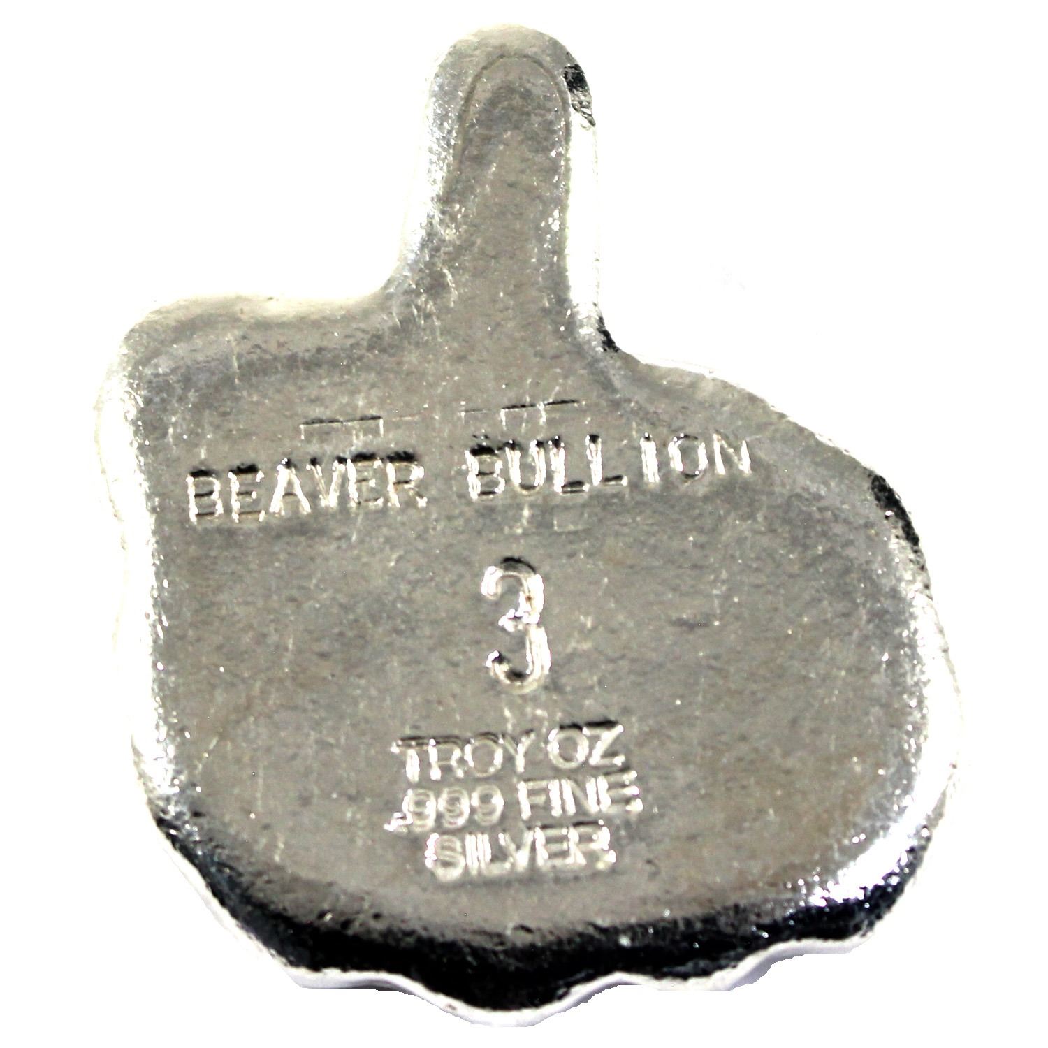 3oz hand poured Fine Silver Hand-'The Finger' by Beaver Bullion. (Tax Exempt)