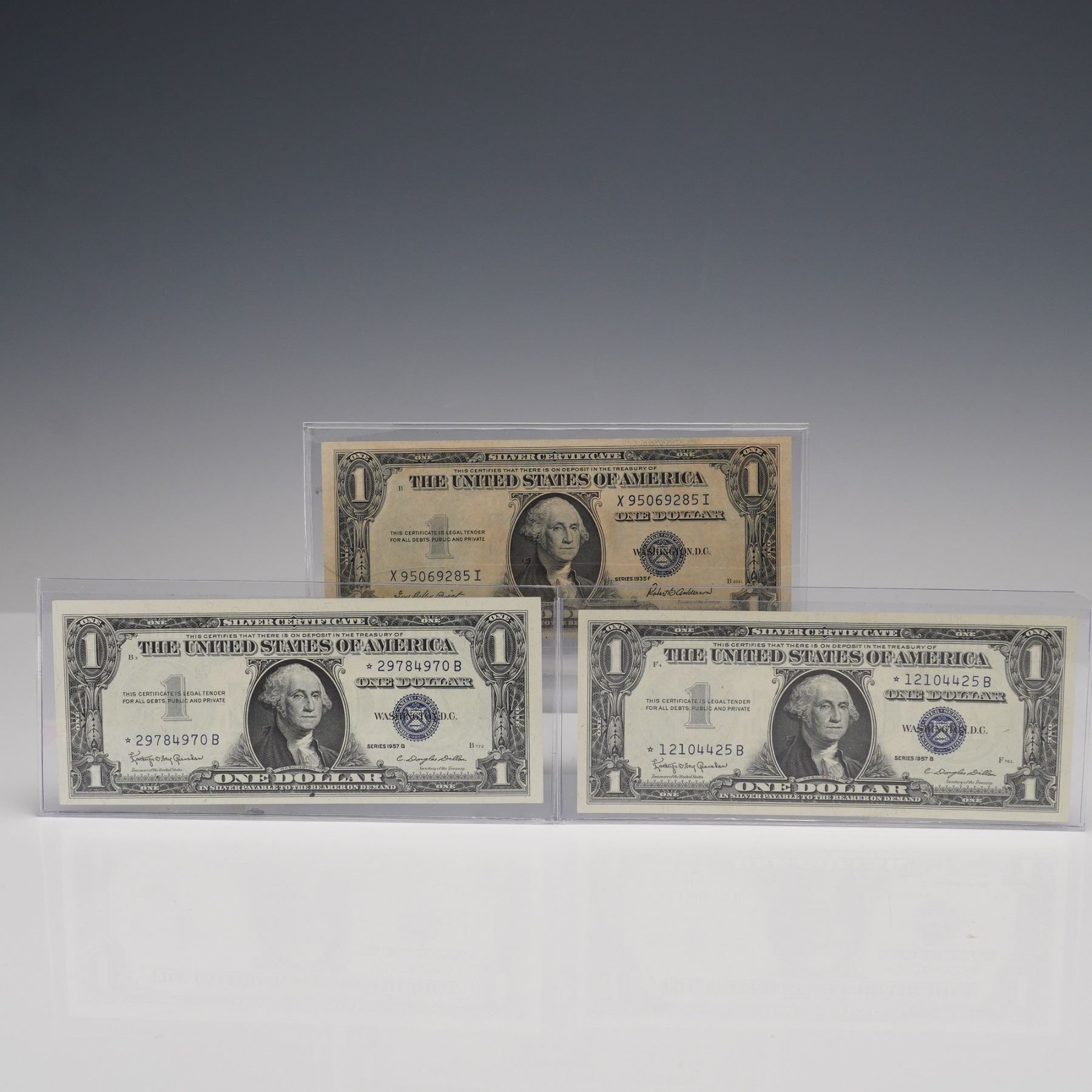 3pc $1 US Silver Certificates, Mule Star Pair & 1935F Askew Serial Prefix