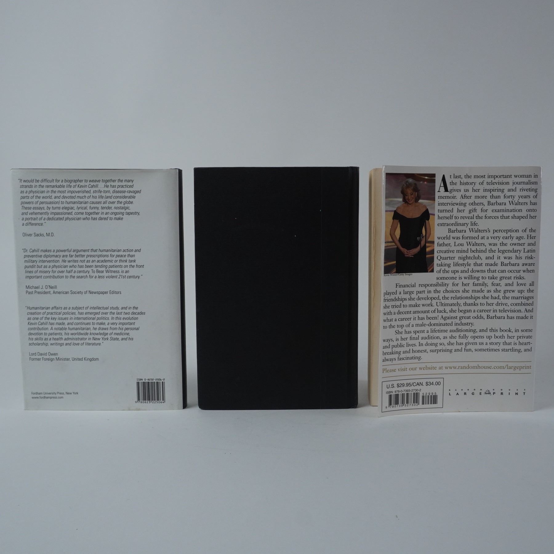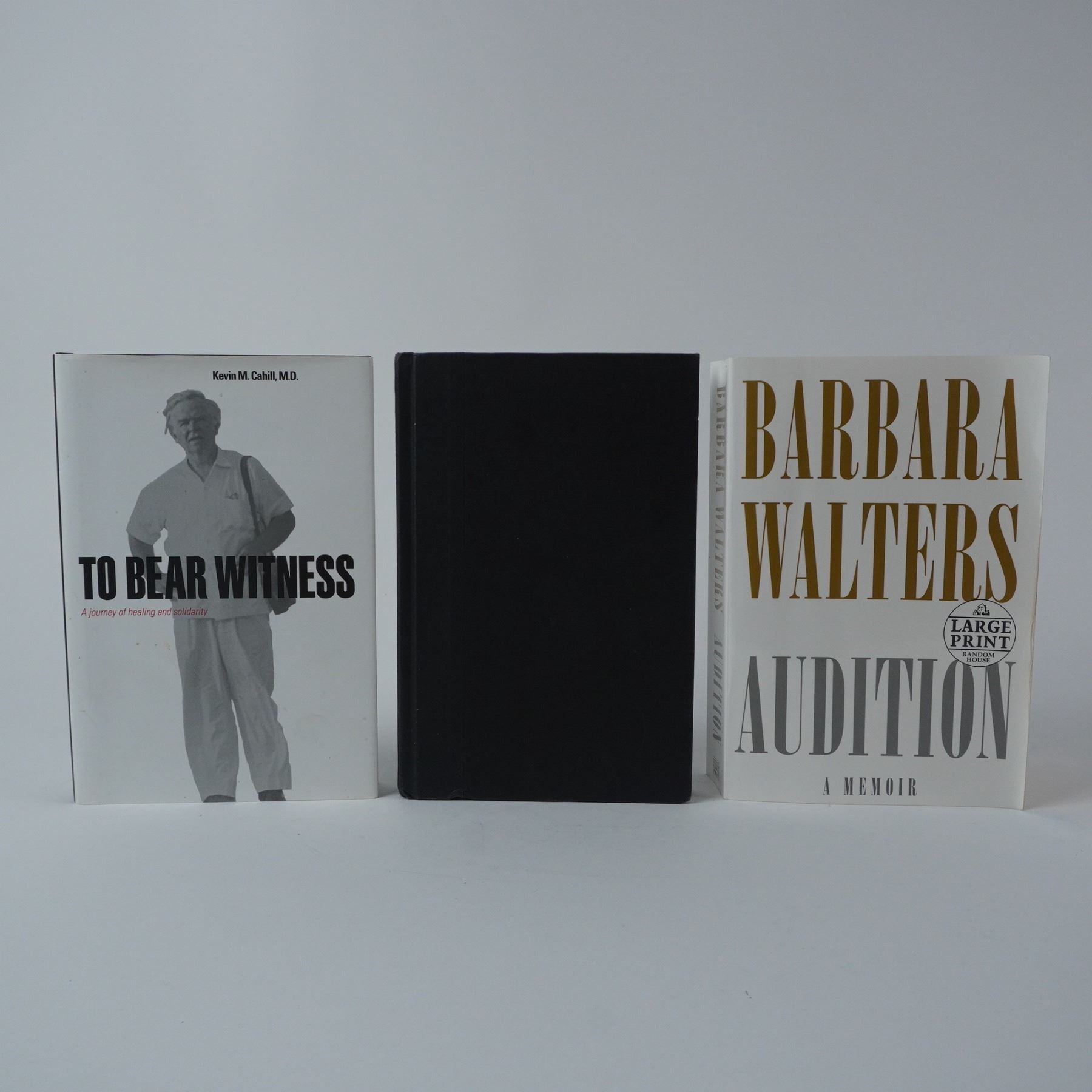 This lot features three compelling memoirs offering unique perspectives from different fields. Barbara Walters' Audition explores a trailblazing career in journalism, Sarah Silverman, The Bedwetter delivers an irreverent and raw take on comedy and personal struggles, and Kevin M. Cahill, M.D., To Bear Witness provides a poignant reflection on humanitarian aid and global crises. Together, these books offer insight into the media, entertainment, and humanitarian worlds, making this an engaging collection for readers interested in powerful personal narratives. Largest book measures 9.25"H.