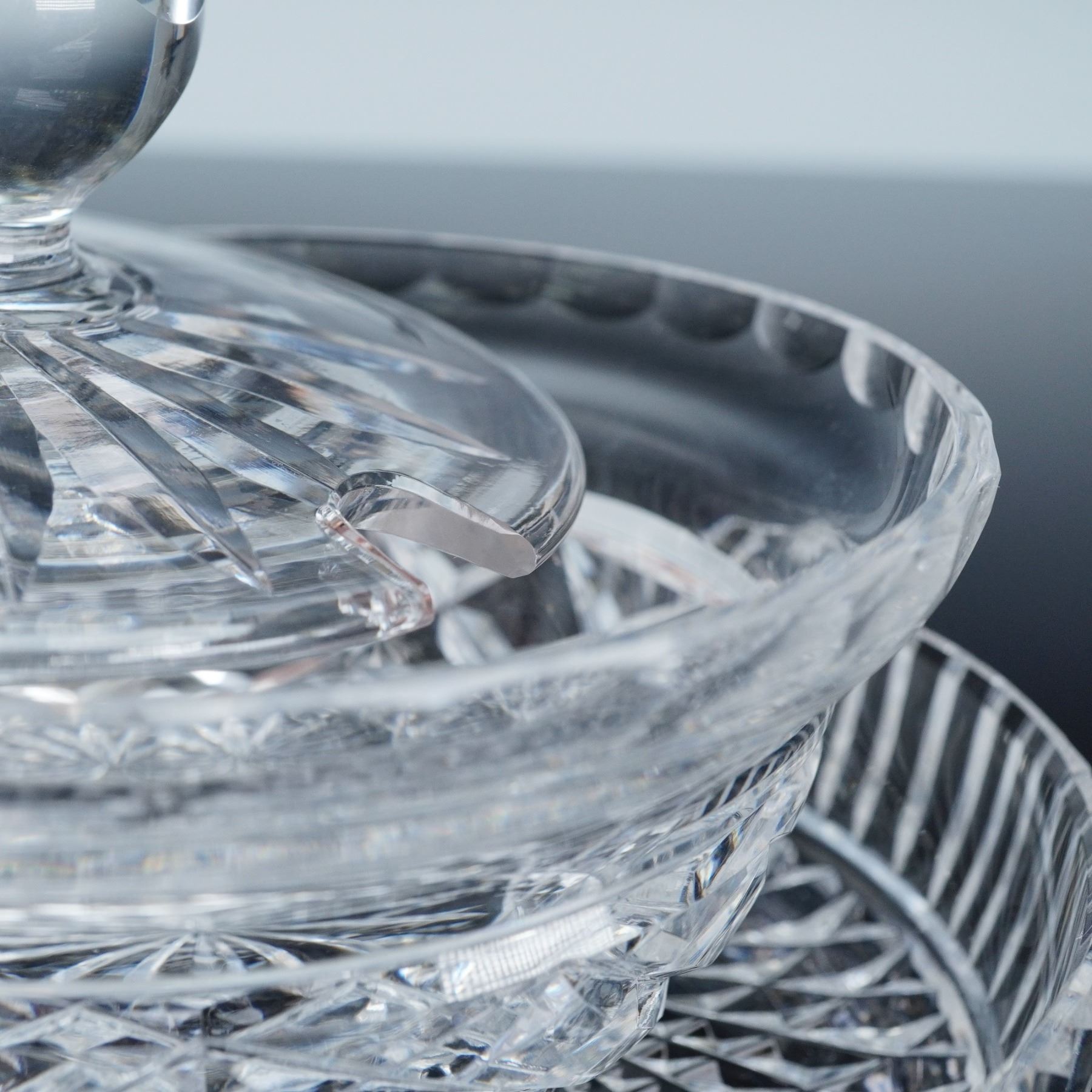 3pc Cut Crystal Condiment Jar with Lid and Dish