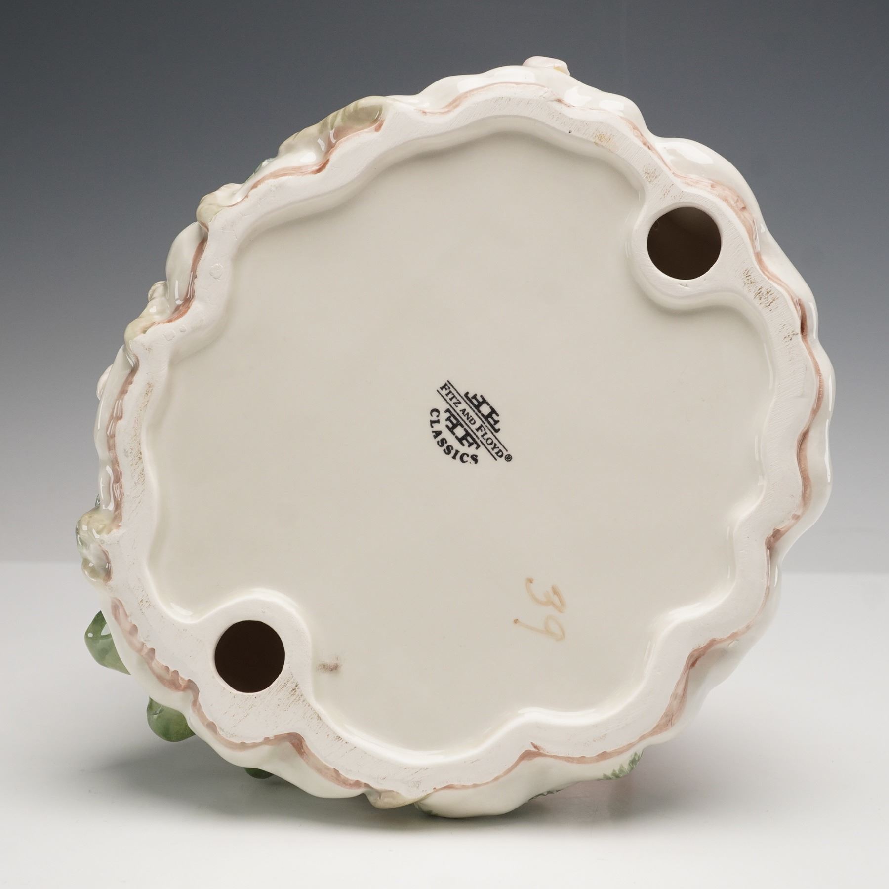 A delightful holiday set featuring three Fitz and Floyd Classics porcelain angel figural pieces, including a pair of candlesticks and a matching single candleholder. Each angel is beautifully detailed with flowing robes, feathered wings, woodland animals, and snowy evergreen accents, capturing a serene winter scene. Hand-painted in soft pastel tones with pearlized highlights, these figures make an ideal Christmas or winter display. Marked Fitz and Floyd Classics on the base.