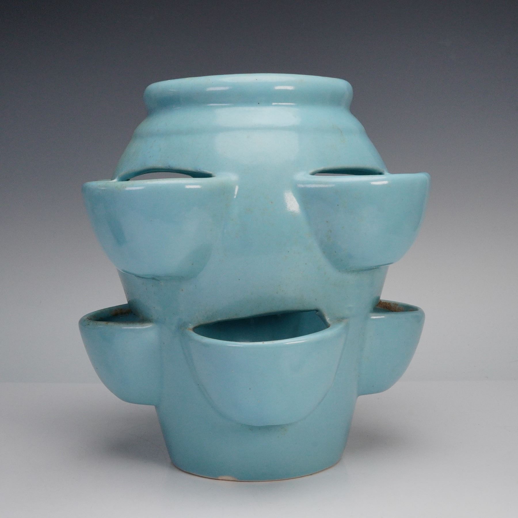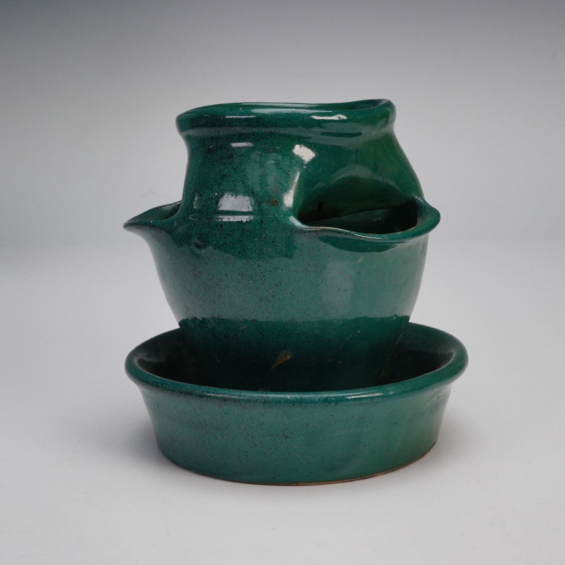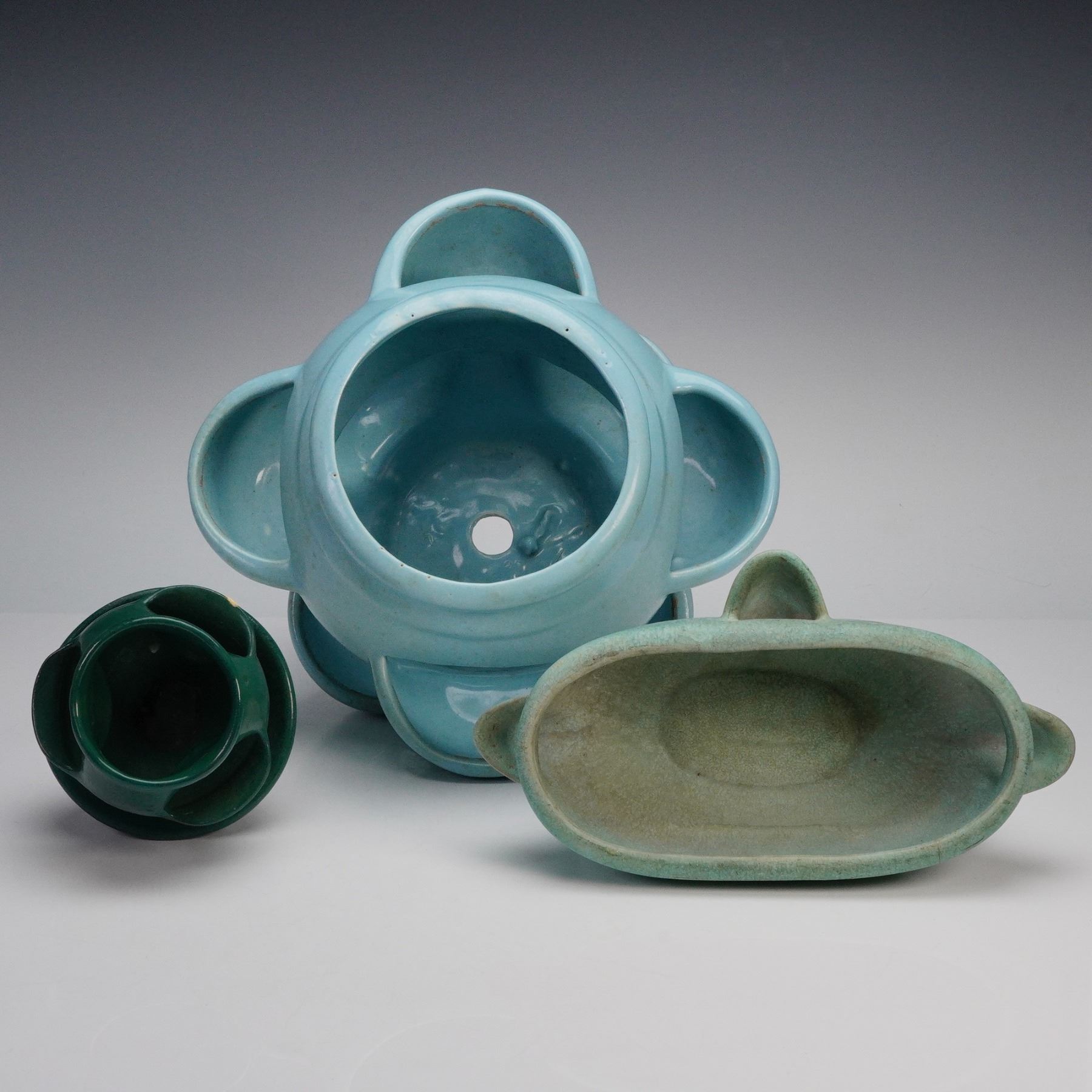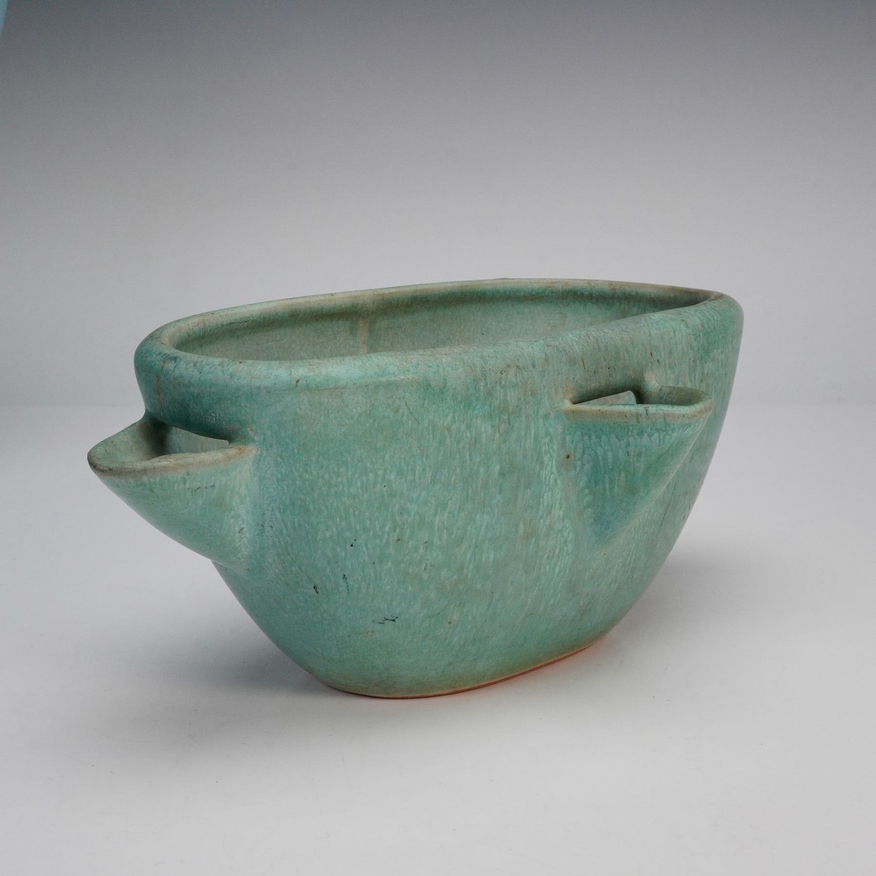 Condition: Age related wear. Prior repair on rim of small green planter.