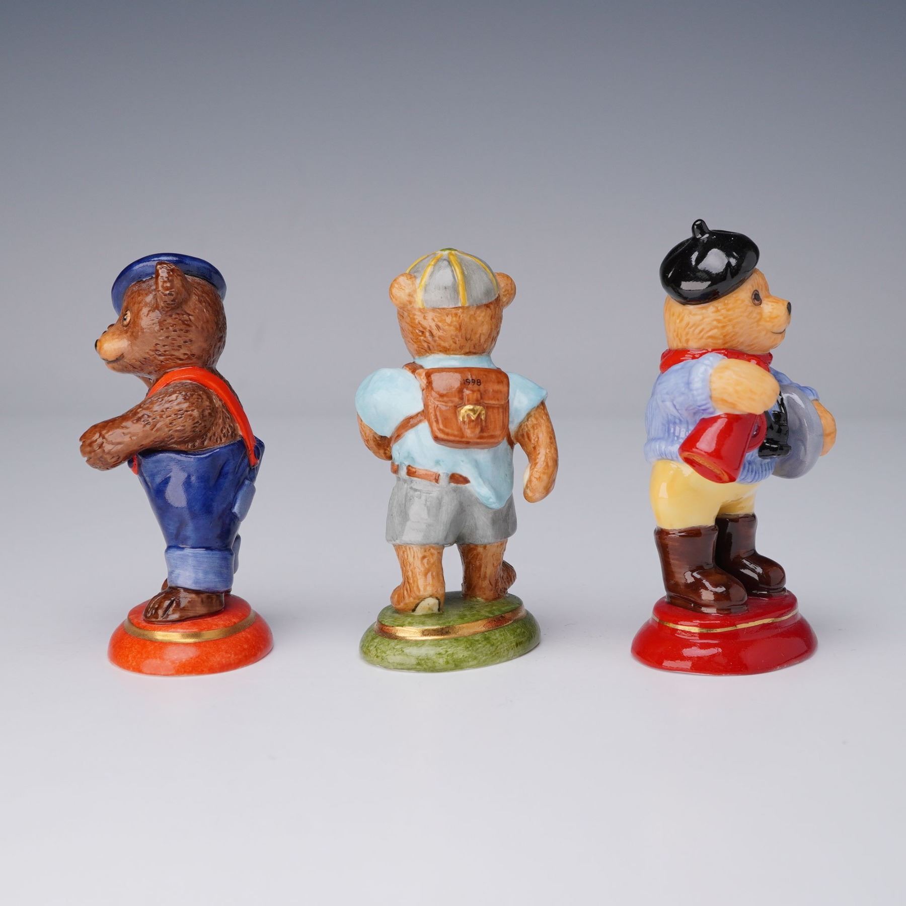 3pc Halcyon Days Teddy Bears Figurines, Scout, Director and Blue Beret