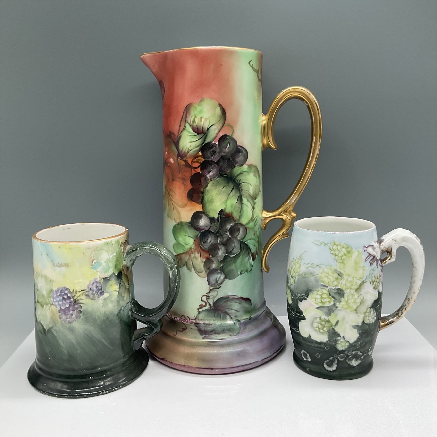 3pc Hand Painted Tankard and Mugs, Grapes and Blackberry Mot