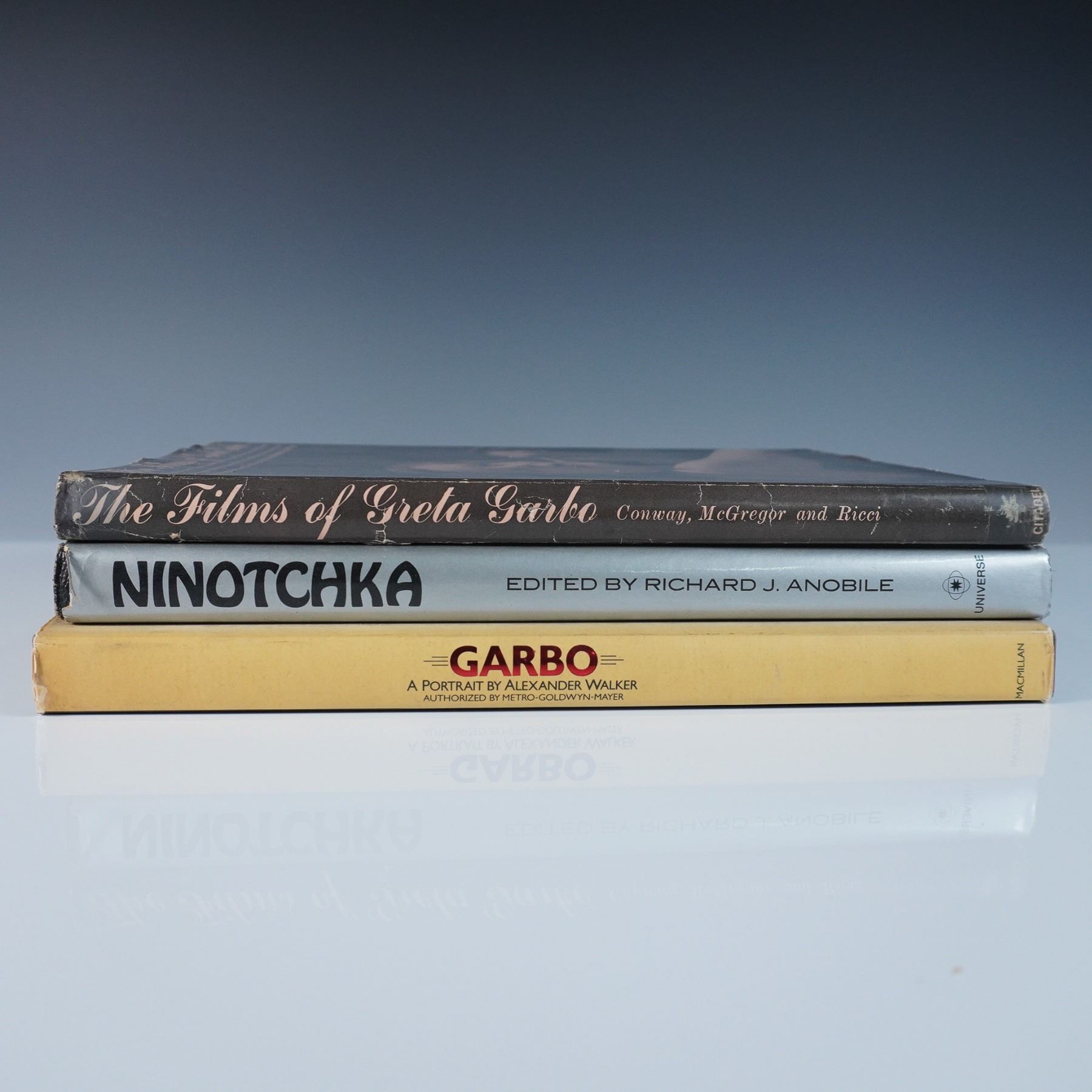 A collection of three vintage books dedicated to the legendary Hollywood actress Greta Garbo. This lot includes The Films of Greta Garbo by Conway, McGregor, and Ricci, offering a detailed retrospective of her career with photographs and film synopses. Ninotchka, edited by Richard J. Anobile, is a visual recreation of the classic 1939 Ernst Lubitsch film starring Garbo, featuring over 1,500 frame enlargements and full dialogue. Lastly, Garbo: A Portrait by Alexander Walker, an in-depth biography authorized by Metro-Goldwyn-Mayer, explores her enigmatic life and cinematic impact. A must-have set for classic film enthusiasts and collectors. Lot measures: 9"L x 2.5"W x 11.25"H.