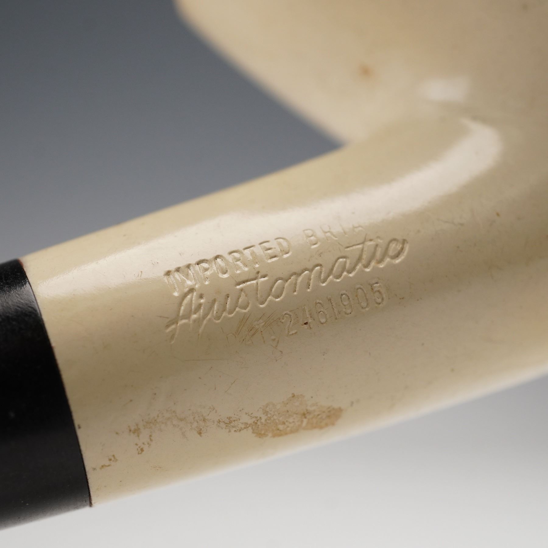 Group of three vintage smoking pipes including one marked Jarl Chieftan Made in Denmark, one marked Viscount Dr. Grabow Imported Briar Ajustomatic, and one marked Trapwell Imported Briar. Each piece shows distinctive styling and classic mid-20th century craftsmanship in wood and stem design.