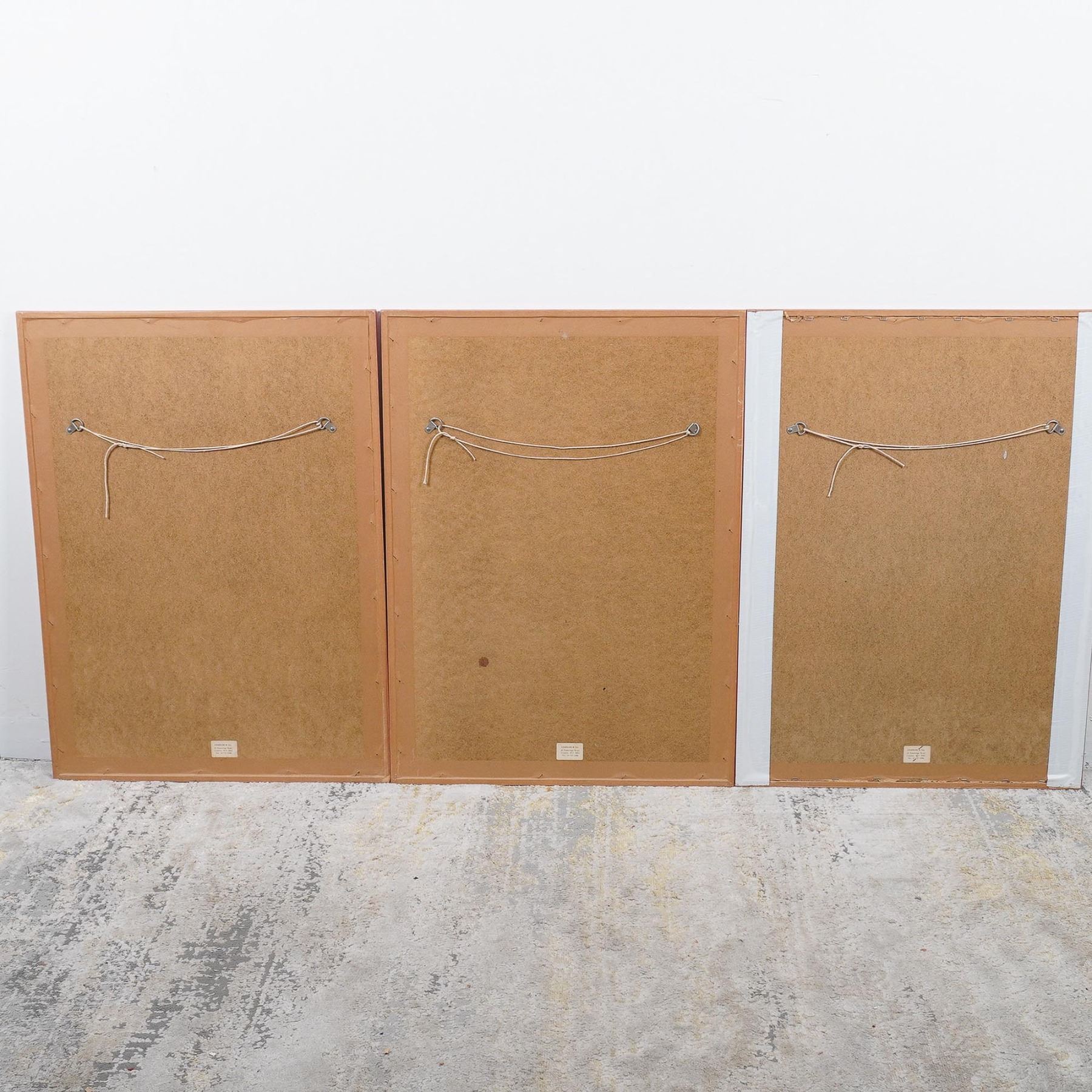 A 3-piece limited edition print set by artist John H. Howard, each signed and numbered 12 of 200. These highly detailed and colorful compositions showcase Howard’s intricate and dynamic artistic style, filled with layered imagery and rich storytelling elements. Each piece is framed in a bold red and black border, enhancing its striking visual appeal. A fantastic addition to any contemporary art collection. Each measures 19.5"L x 26.5"H.