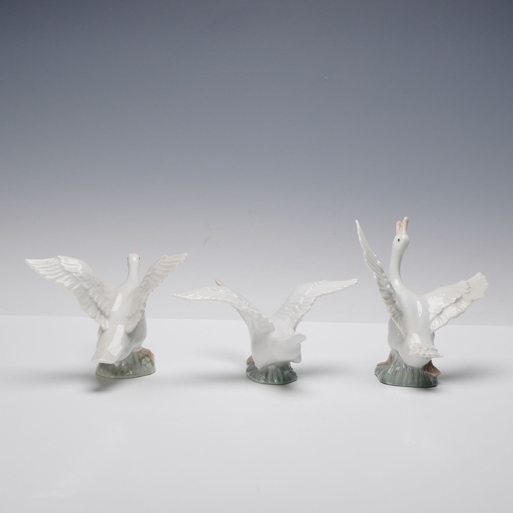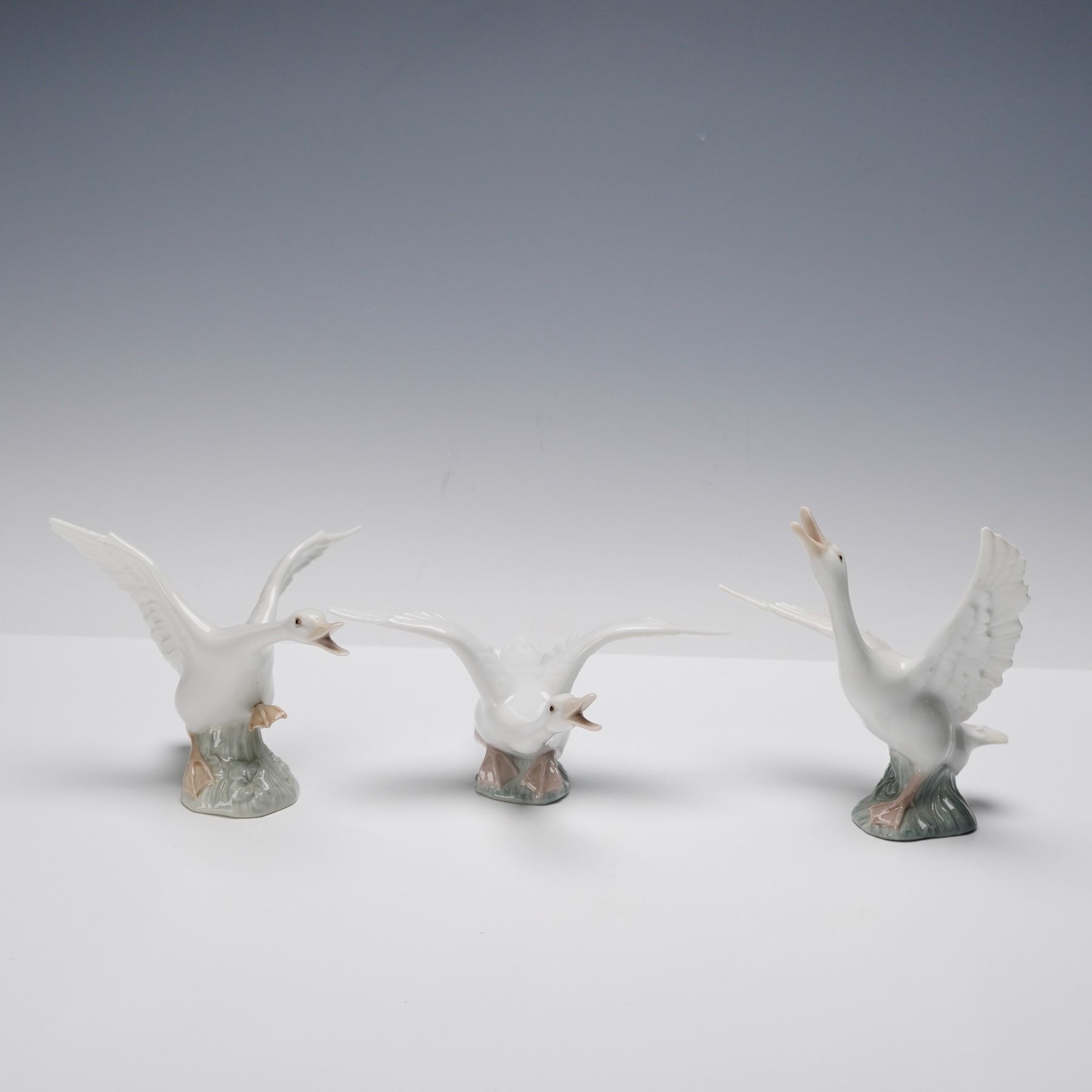 3pc Lladro Porcelain Duck Figurines, Running, Jumping, and Flying