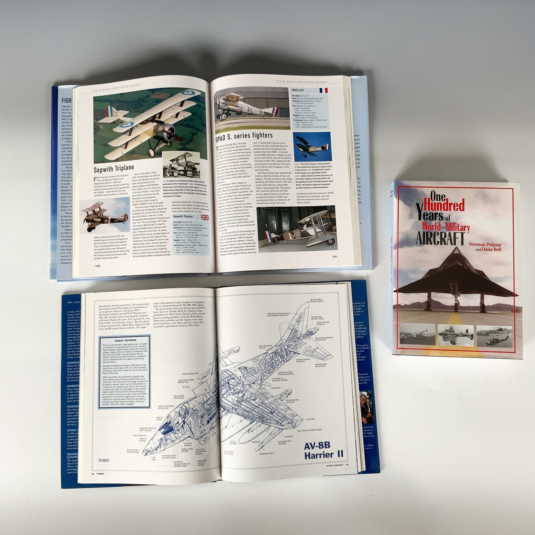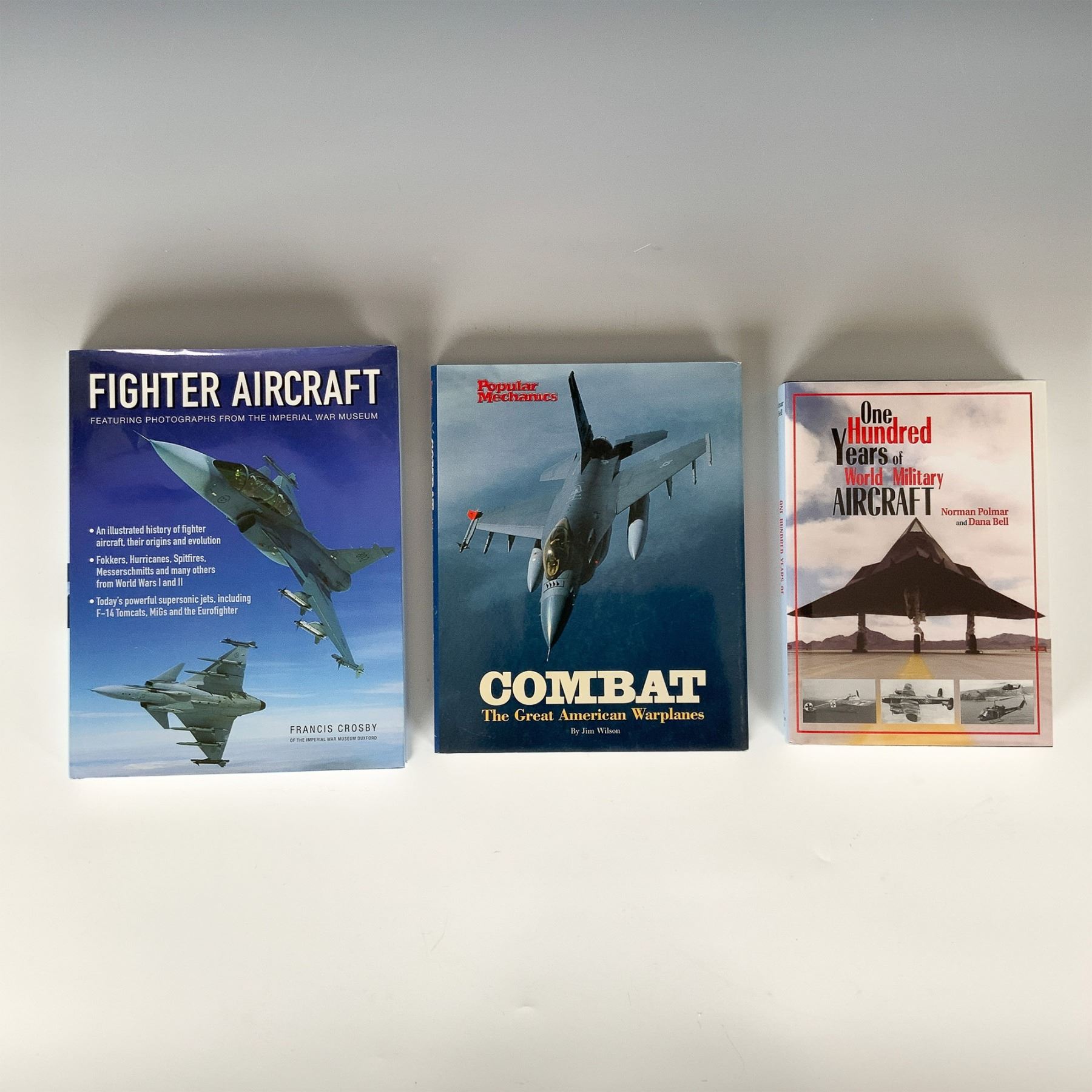 A collection of three hardcover books exploring the history and evolution of military aircraft and warplanes. Included in the set are One Hundred Years of World Military Aircraft by Norman Polmar and Dana Bell (ISBN: 1-59114-686-0), Combat: The Great American Warplanes by Jim Wilson (ISBN: 1-58816-064-5), and Fighter Aircraft featuring photographs from the Imperial War Museum by Francis Crosby (ISBN: 1-84477-064-8). These books provide a comprehensive look at iconic aircraft from different eras, featuring historical analysis, detailed photographs, and insights into technological advancements in aviation. A valuable addition for aviation enthusiasts, historians, and collectors. Largest book measures 9.25"L x 1"W x 12"H.