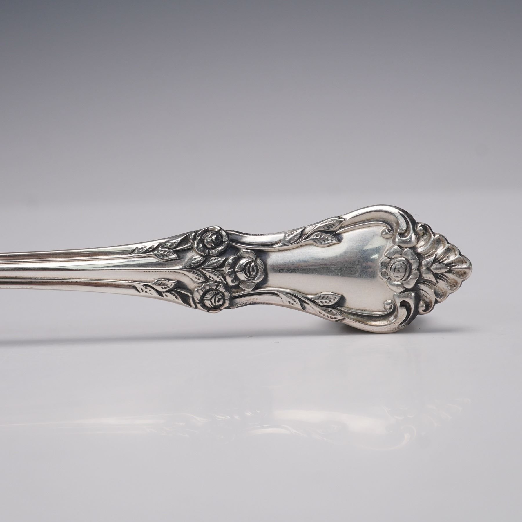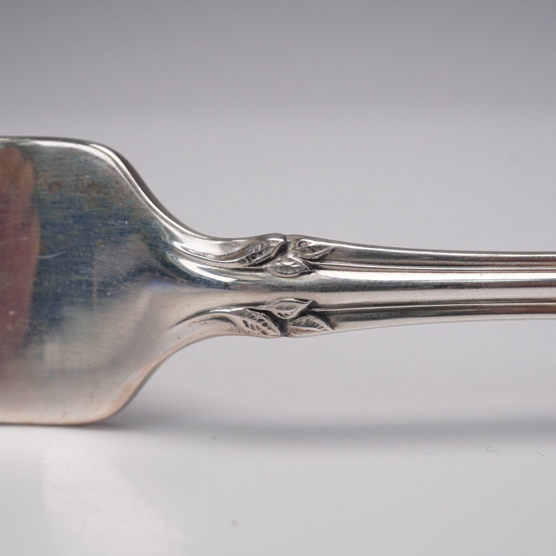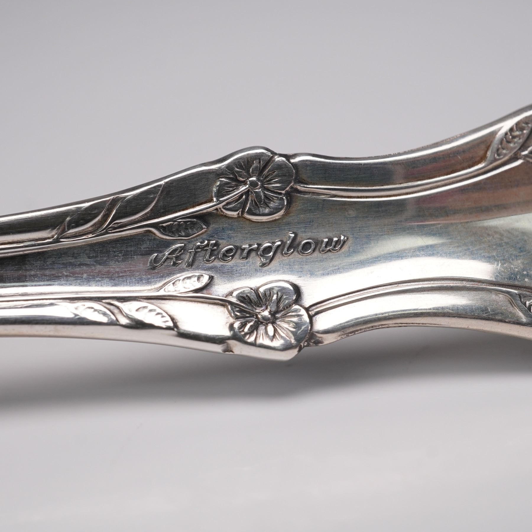 A trio of sterling silver dinner forks perfectly crafted in the Afterglow pattern. These forks are distinguished by their flowing floral motif with delicately sculpted blossoms and trailing vines adorning the handles. Inscribed "Afterglow". Oneida Sterling hallmarked. Net silver 4.53 troy oz.