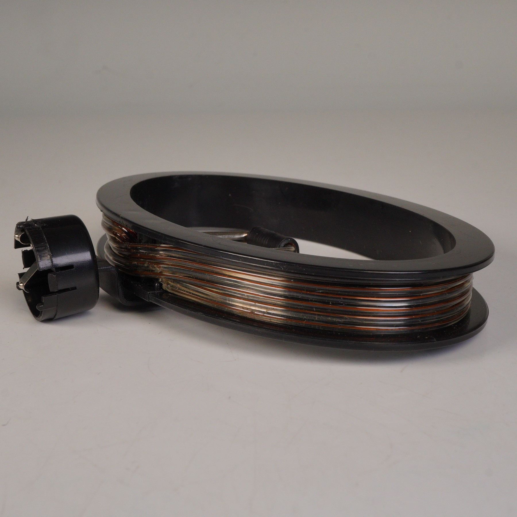 Offered here is a trio of electrical components comprising two glass vacuum tubes and a coiled signal wire assembly. Each tube features a cylindrical glass body with visible internal filaments and black plastic bases, demonstrating mid-century electronic design typical of audio or signal amplification systems. The accompanying wire assembly includes a coiled length of copper conductor wound onto a black plastic reel, fitted with an electrical connector at one end. Also included are printed instruction sheets and paperwork from Sound Collection, a division of Polyconcept Ltd. Model information, if applicable, appears as reference material within the included documents.