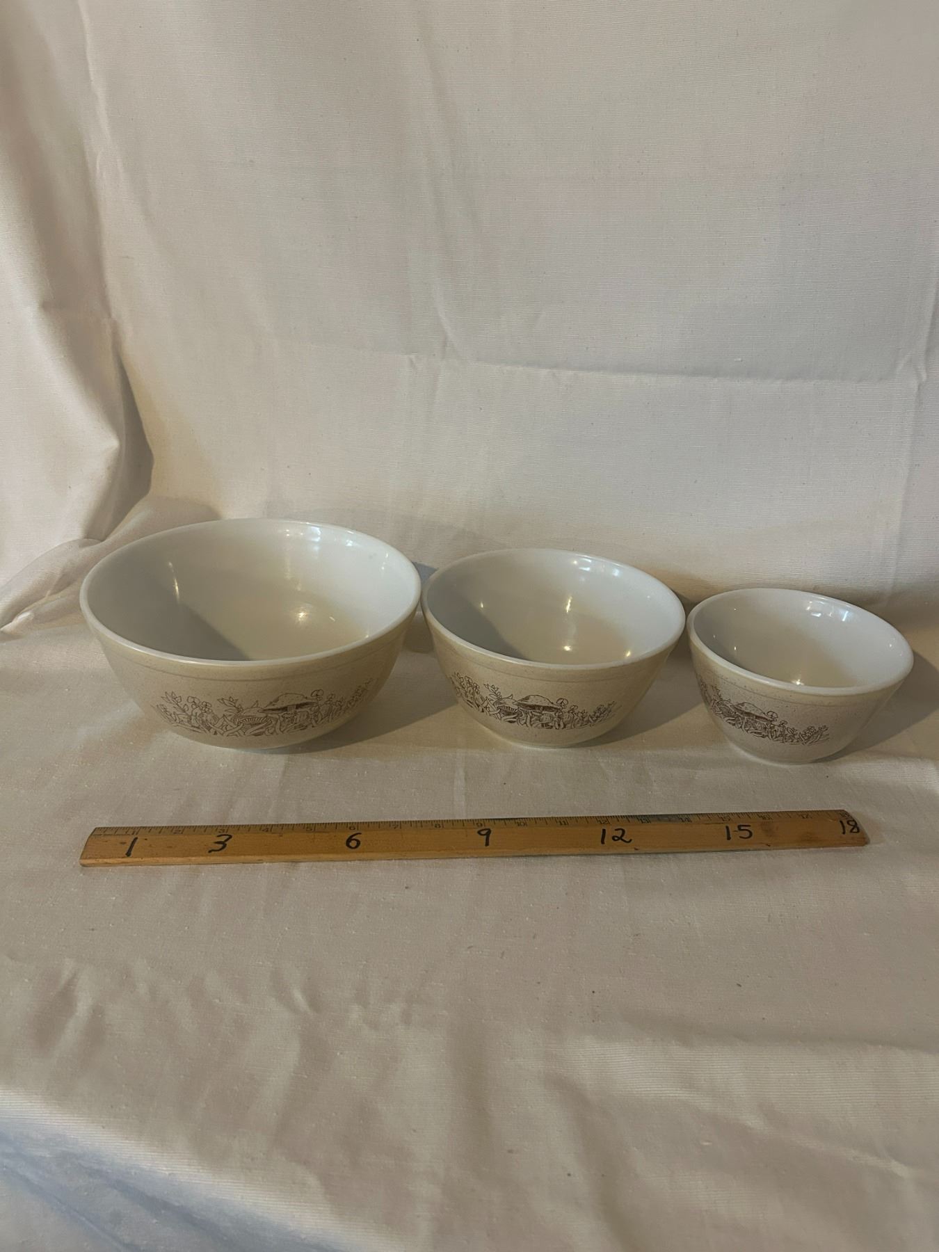 3pc Pyrex bowl set - 6", 7", 9" - Forest Fancies pattern