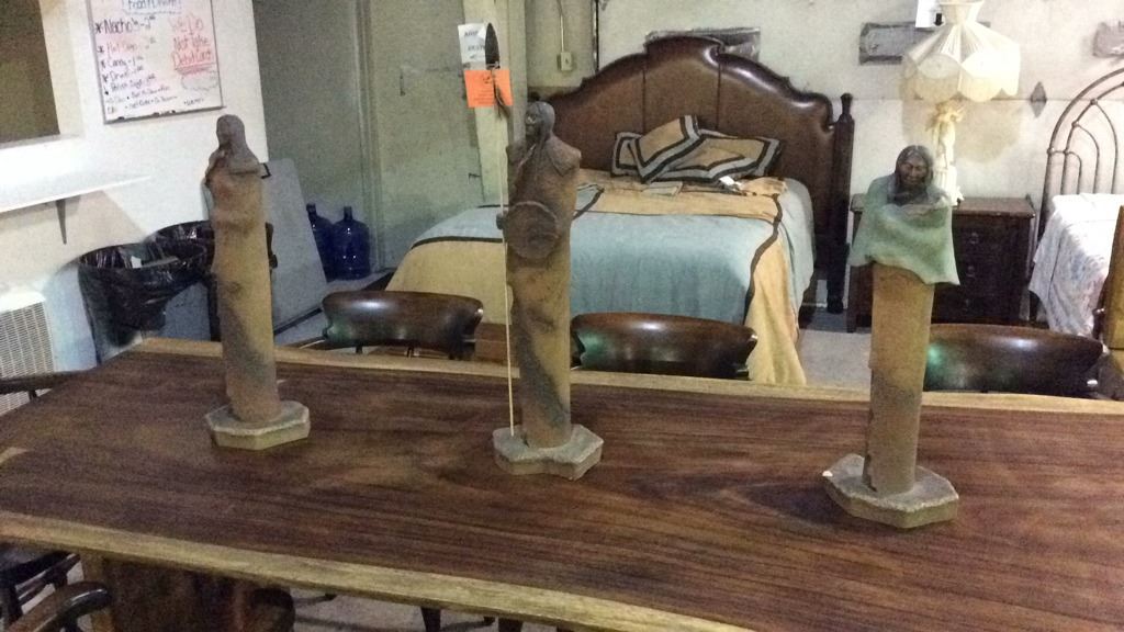 3pc Set of Signed Pottery Native American Statues