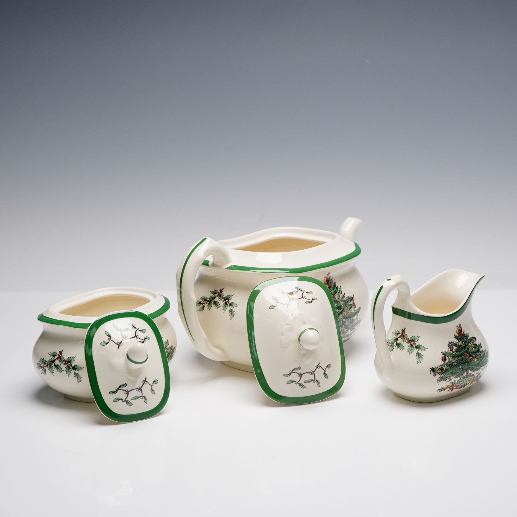 3pc Spode Tea Service Set, Christmas Tree