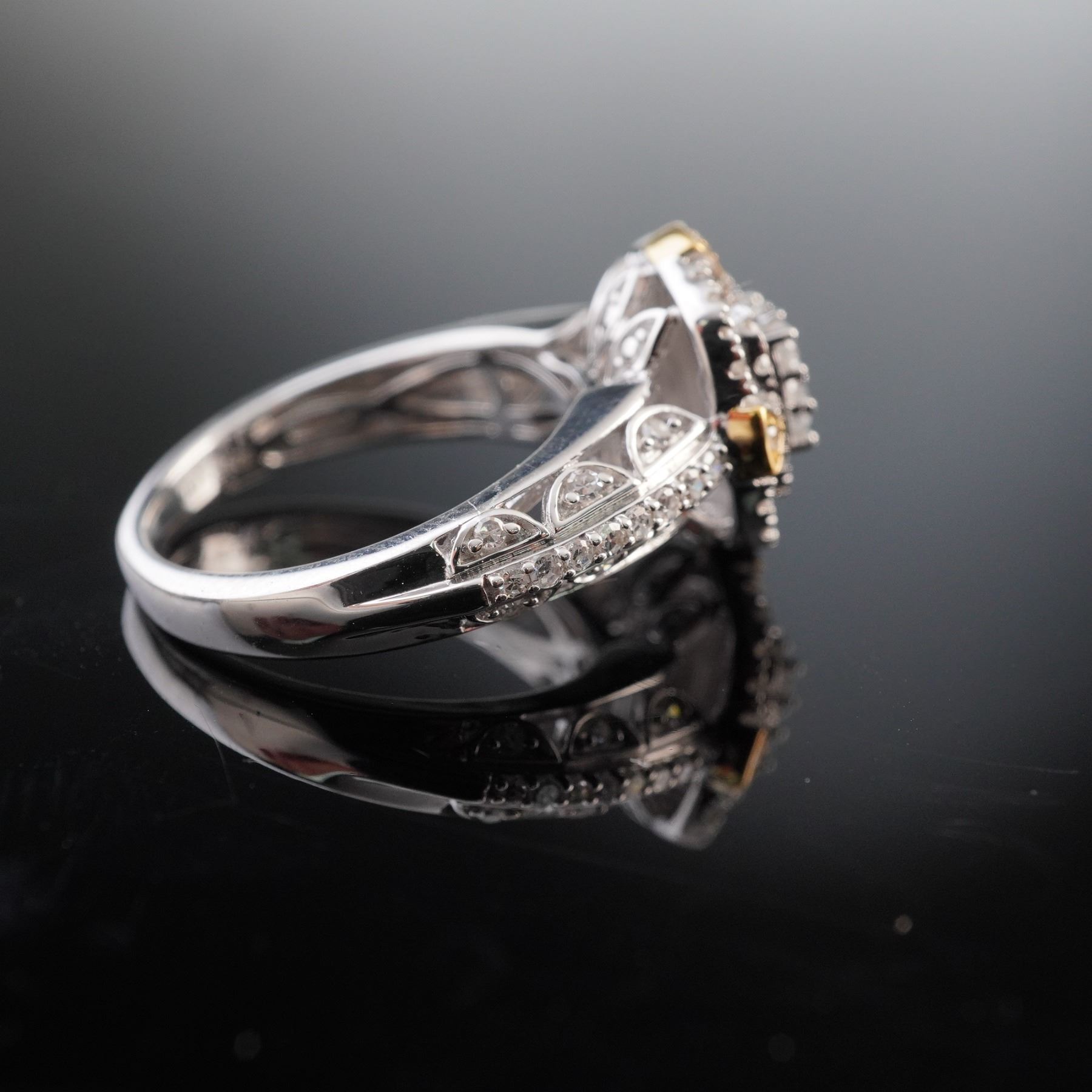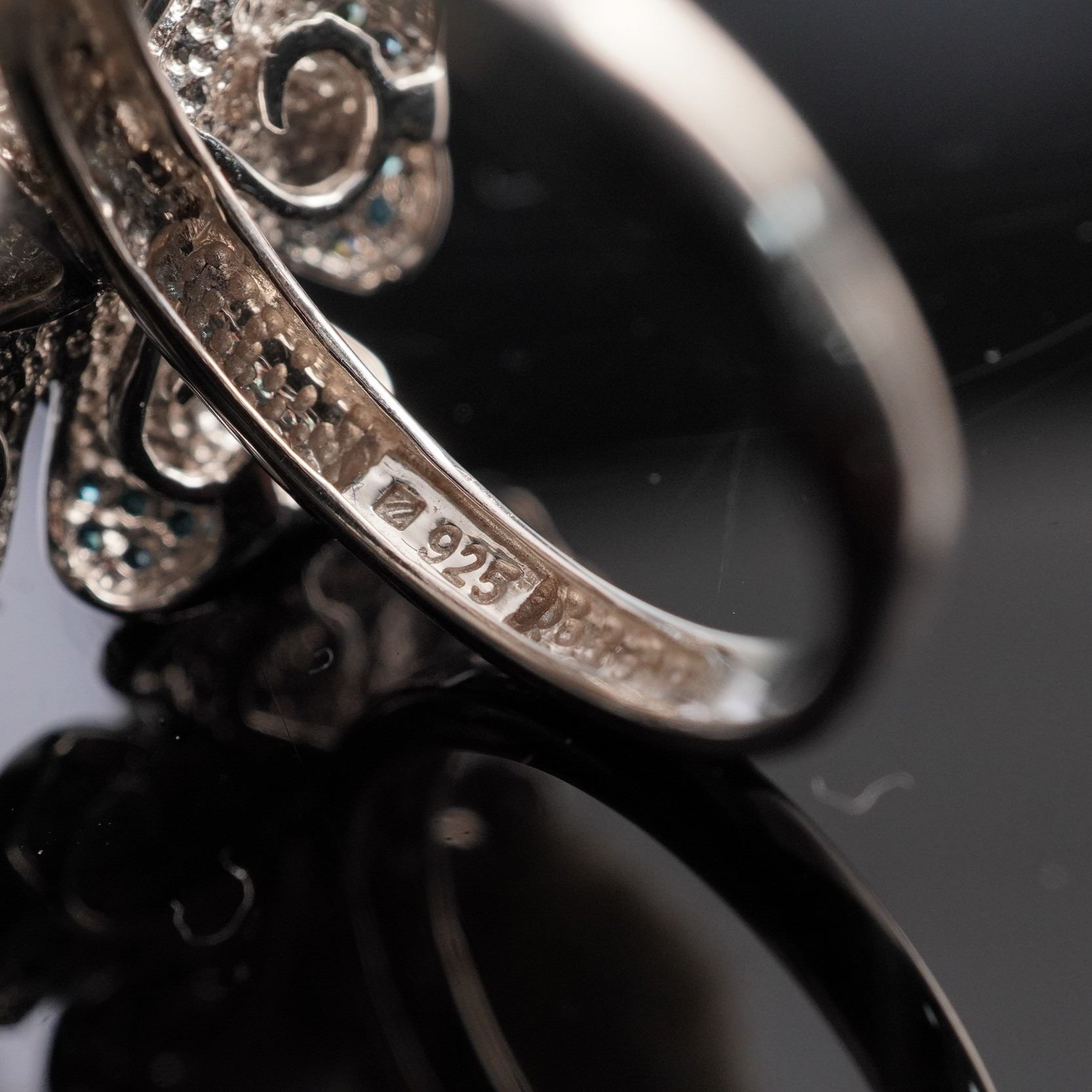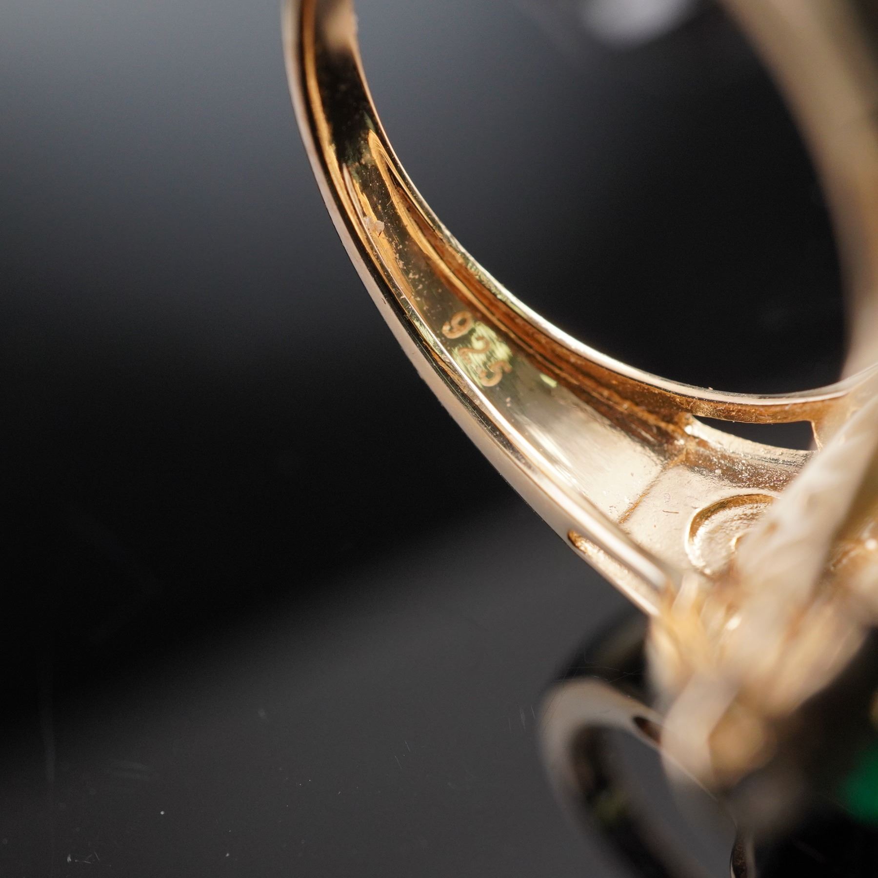 This elegant 3pc ring set features two Sterling silver rings with a gold-tone finish and one Sterling silver ring with a polished silver look. The first ring showcases a striking green stone at the center, the second features a detailed flower design adorned with clear stones (marked Thailand), and the third is a sleek, classic band with clear stones and gold accents. Each marked 925, total weight with stones 15.7 g.
