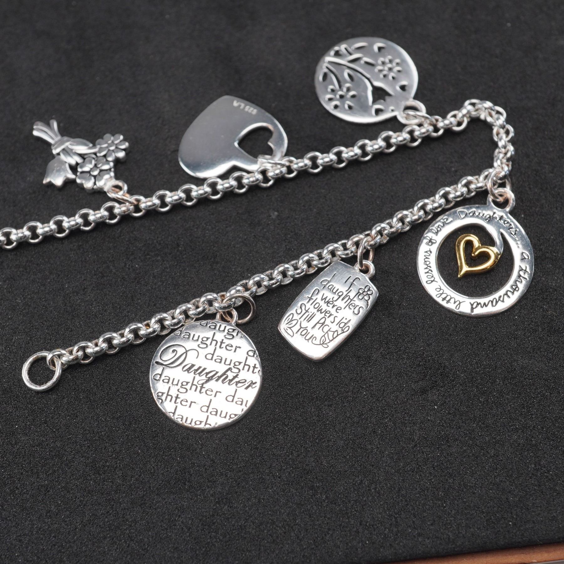 3pc Sterling Silver Sentimental Necklaces and Daughter Charm Bracelet