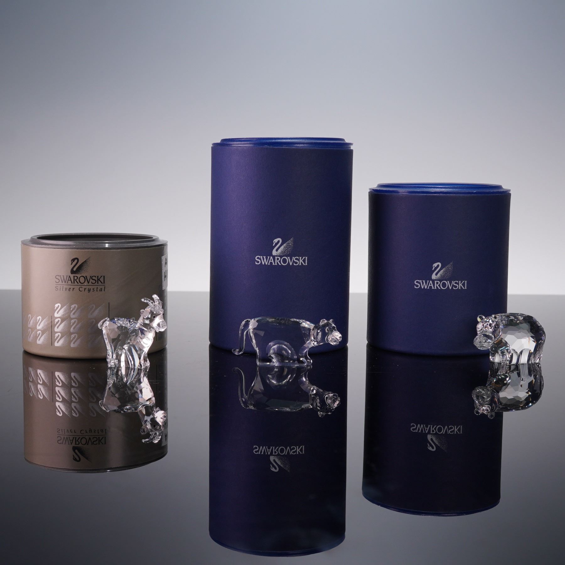 3pc Swarovski Crystal Figurines, Tiger 22470, Goat 275438, and Hippo 622940