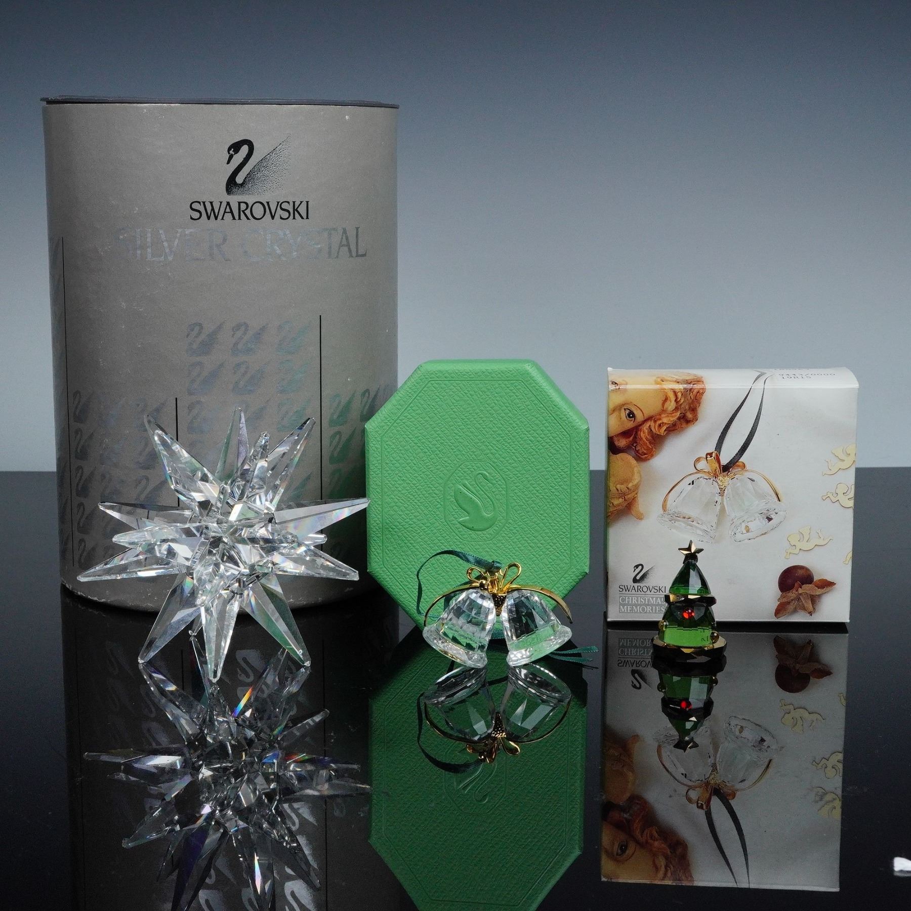 3pc Swarovski Crystal Star Candleholder, Bell Ornament & Christmas Tree